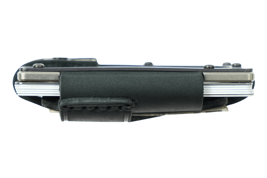 The Trayvax Contour is our most refined leather wallet to date. The bottom plate is highly-precise CNC-machined stainless steel. The top plate is PVD-coated for durability. Each plate is wrapped in top-grain oil-tanned leather, which will develop a patina as a constant reminder of your journey. Ideal for use as a front-pocket wallet, the sleek design and slim profile ensure a compact and lightweight everyday carry.