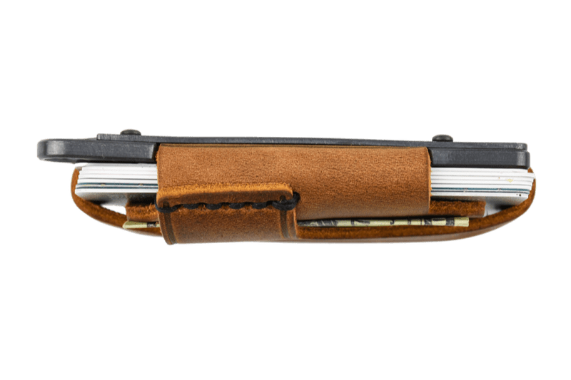 The Trayvax Contour in Black Tobacco Brown, is our most refined leather wallet to date. The bottom plate is highly-precise CNC-machined stainless-steel, brass, or titanium. The top plate is PVD-coated for durability. Each plate is wrapped in top-grain oil-tanned leather, which will develop a patina as a constant reminder of your journey. Ideal for use as a front-pocket wallet , the sleek design and slim profile ensures a compact and lightweight everyday carry.