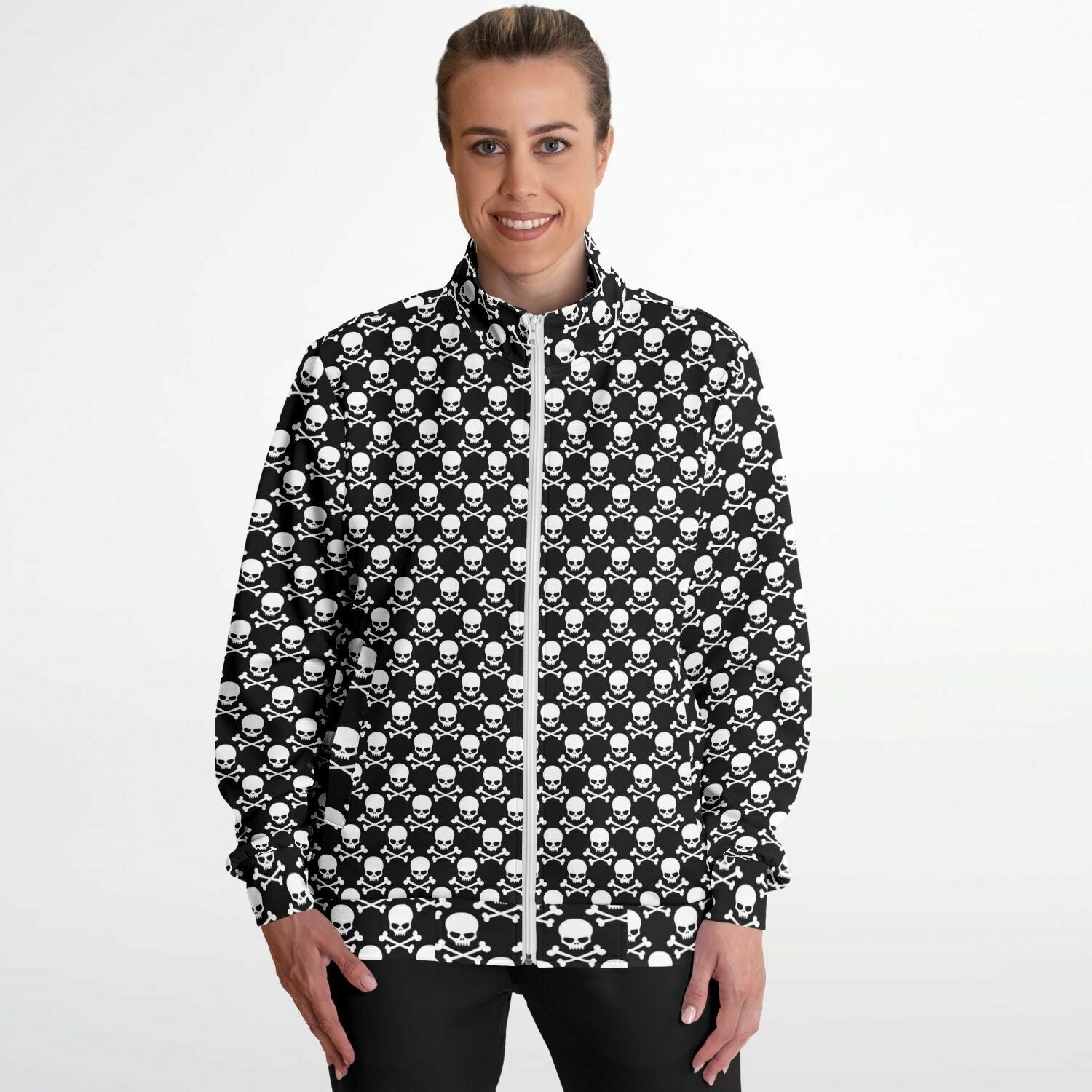 Presenting our sustainable track jacket, crafted from 95% recycled polyester and 5% spandex. With its smooth, tight-knit surface, it perfectly showcases vibrant prints and colors, while the inner surface ensures comfort for the wearer.