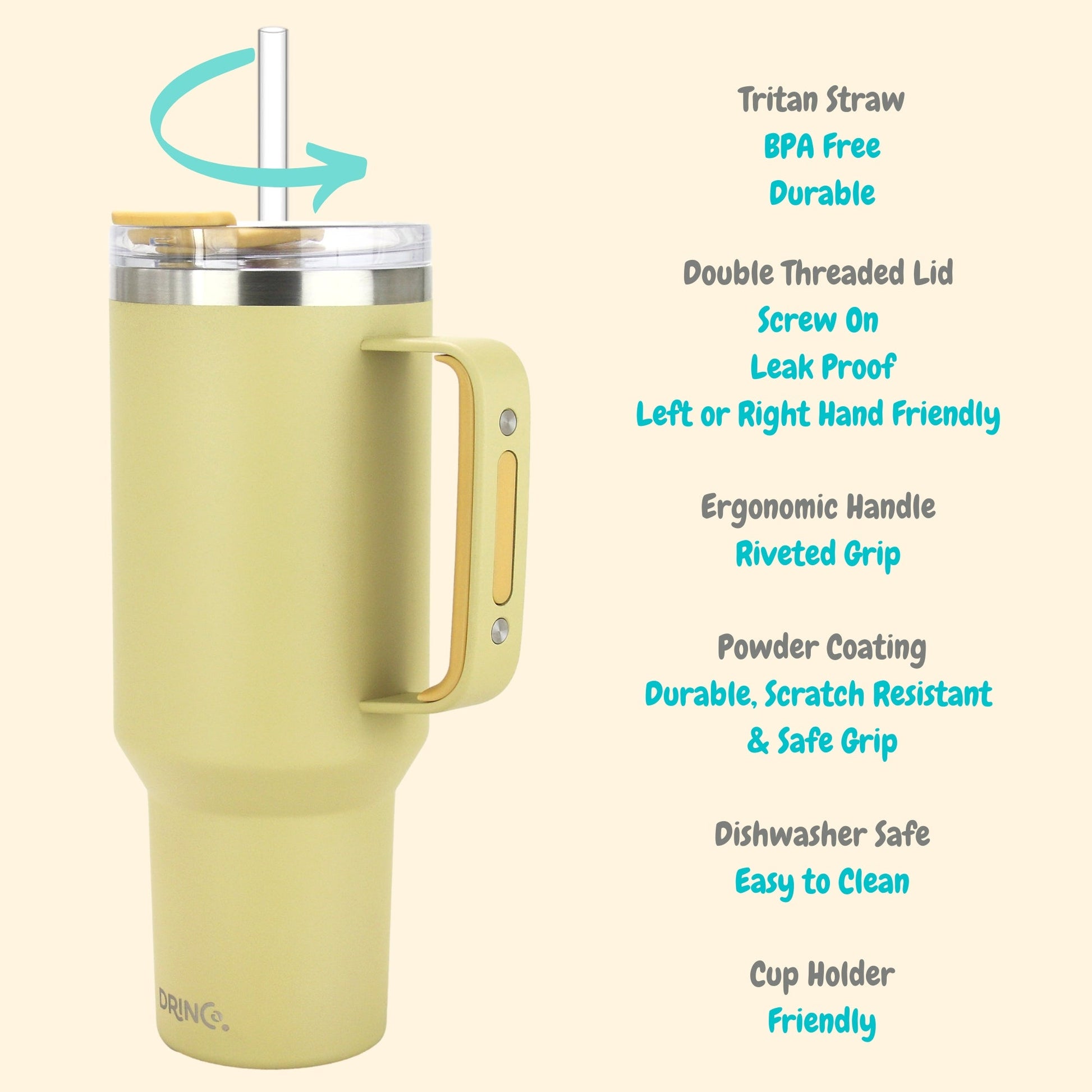 - PREMIUM QUALITY STAINLESS STEEL: The Drinco travel tumbler with straw has been constructed with a sturdy stainless steel (18/8) body a material lauded for its durability. Effective insulation with a see-through removable cap to keep your drinks hot and cold for hours.
