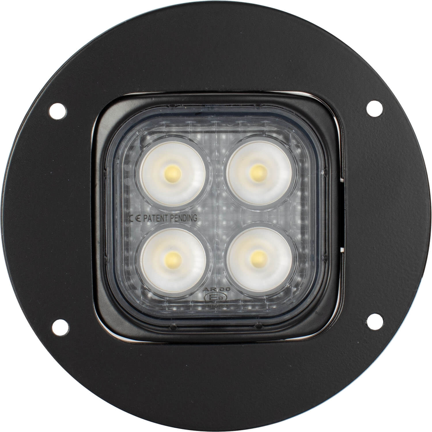 The Dura Mini Kit with Round Flush Kit allows the popular DURA-M460 LED light fixture to be professionally mounted flush against a surface. All of the benefits of the DURA-M460 LED light fixture are included along with the round steel flush mounting bracket. The 60 degree optics provide a wide spread flood of light that gives excellent coverage directly in front of the fixture. The Dura Mini Reverse Kit with Round Flush Mount comes standard with an extended warranty.