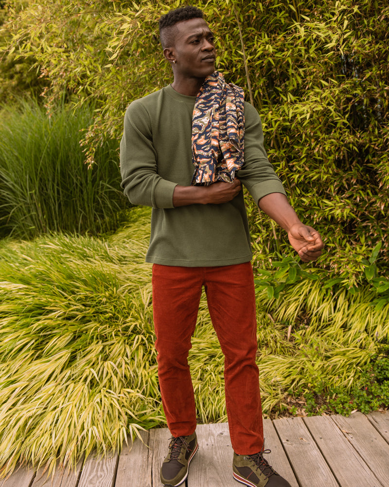 Snuggly. A cozy waffle-knit crew that fits the bill for staying in, going out, or residing under your favorite flannel. Made with our signature EcoKnit™ blend of organic and recycled materials.