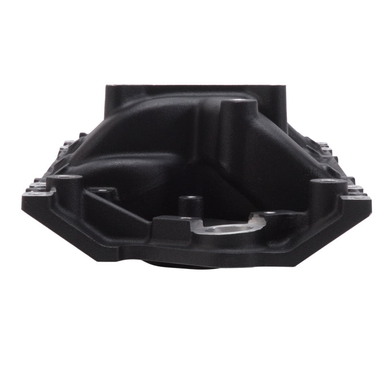 Edelbrock part #75163 RPM Air-Gap intake manifold is designed for 262-400 c.i.d. Chevy V8's with 1996 and later Vortec (L31) cast iron or Edelbrock E-Tec aluminum heads. This intake manifold is based on the powerful Performer RPM Vortec #7116. The air-gap design features an open air space that separates the runners from the hot engine oil resulting in a cooler, denser charge for more power. An external water bypass boss is machined into the front of the water crossover for use on 1996 and later Vortec production engines. Includes rear water outlets, nitrous bosses, a temp sensor boss that clears all waternecks, two distributor clamp locations and a heater outlet boss that's angled for proper fit over the valve cover. Accepts 1976 and later alternator and air-conditioning brackets for street installations. For square-bore carbs. No provision for exhaust-heated chokes and no exhaust crossover. Will not fit under stock Corvette hood. This manifold offers a durable black power coated finish for long lasting protection and a distinctive look.