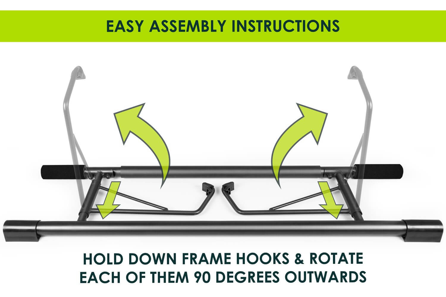 Unlike standard doorframe bars, this new design doesn't require screws, confusing assembly, or installation. Use straight out of the box and start strengthening your back, arms, shoulders, or abdominals.