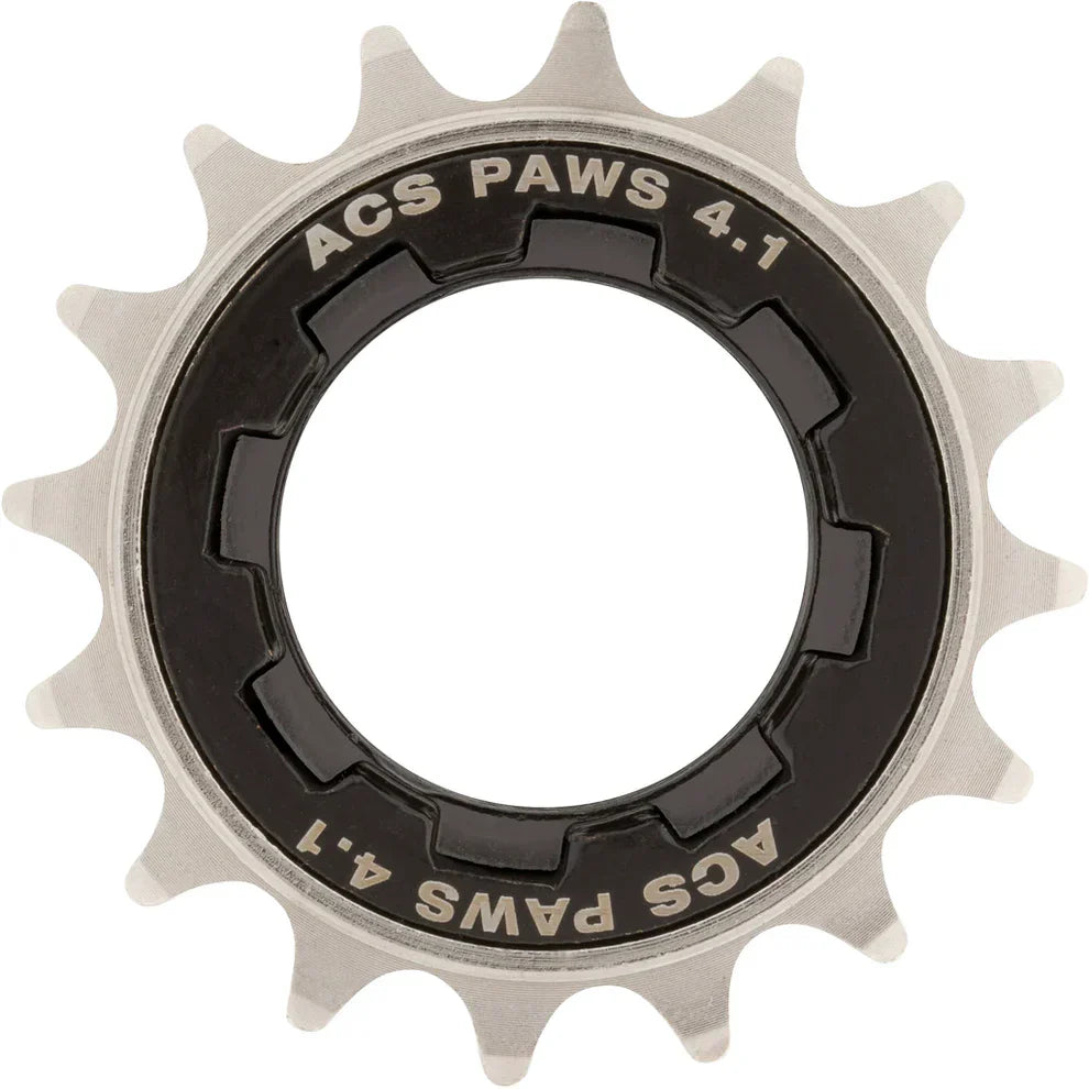 Paws 4.1 Freewheels feature 4-notch removal, compatible with all removal tools. Nickel plated sprocket ring with black inner body.