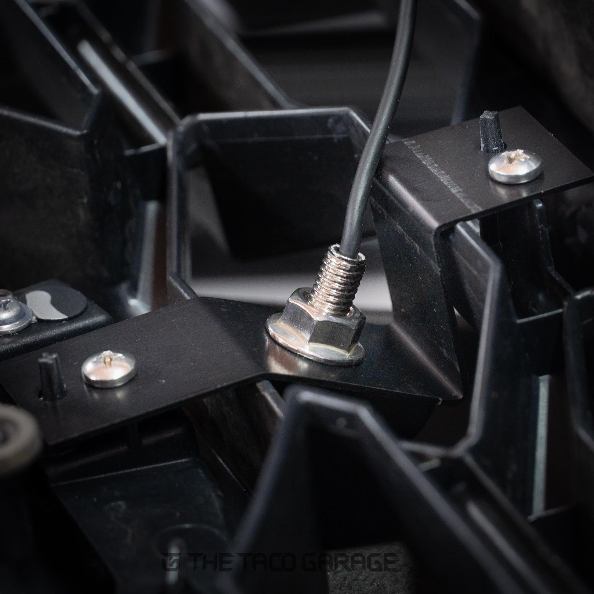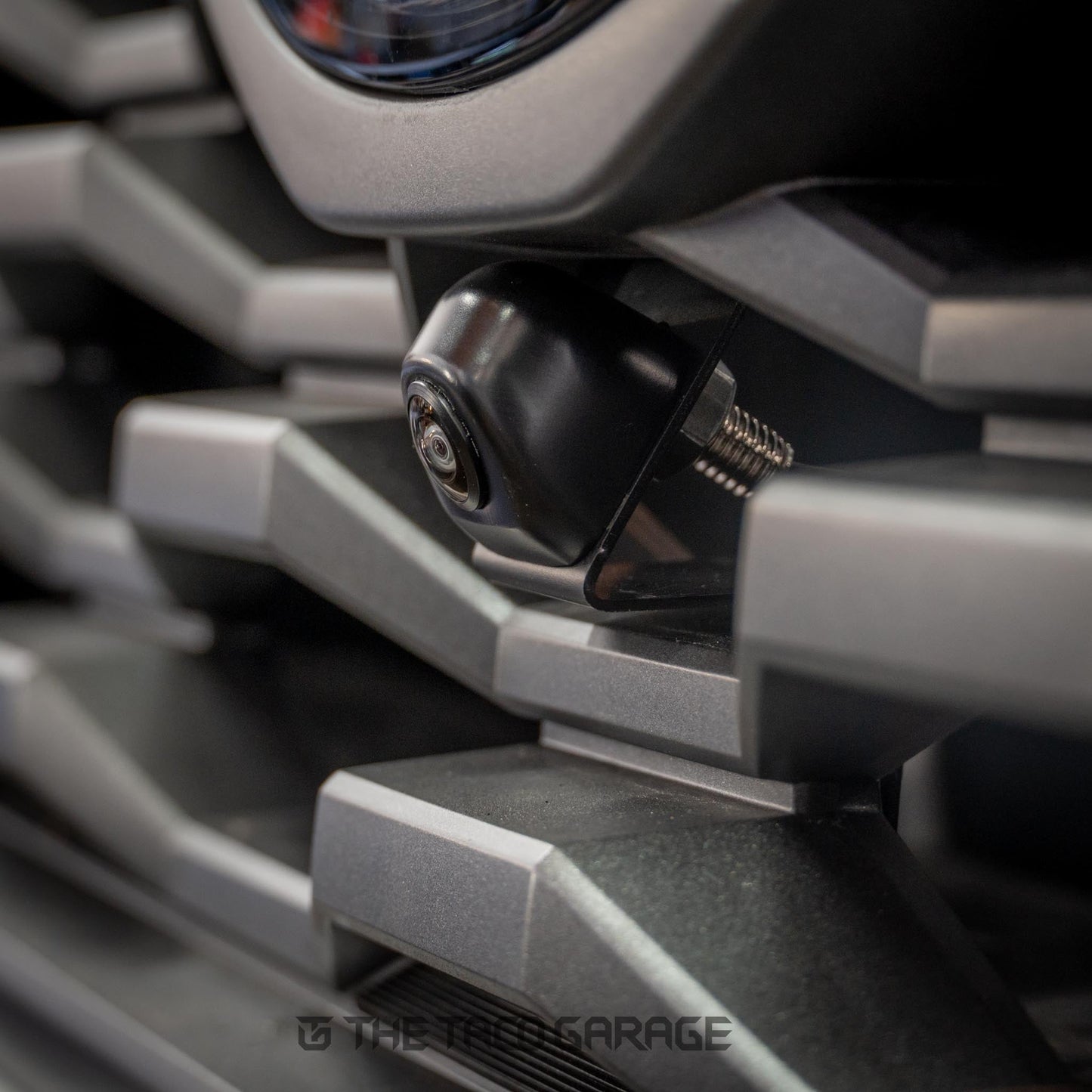 This camera bracket will allow you to mount a single post style camera to the front of the stock TRD Sport or TRD Off-road Grill on 2020 -2023 Tacos. The bracket attaches to the grill using existing factory mounting points using 2 screws (included).