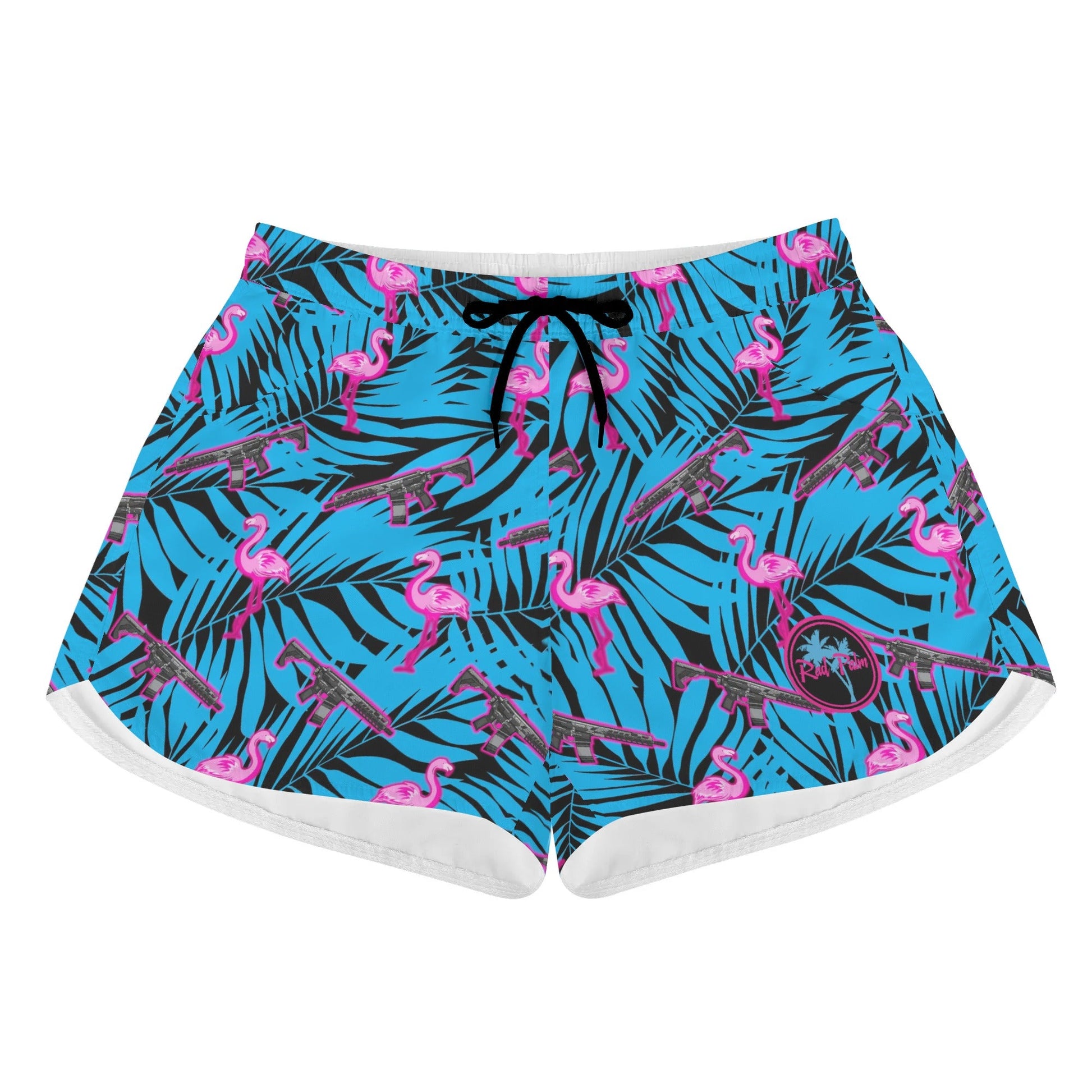Frontline Flamingo Dark Womens Casual Beach Shorts