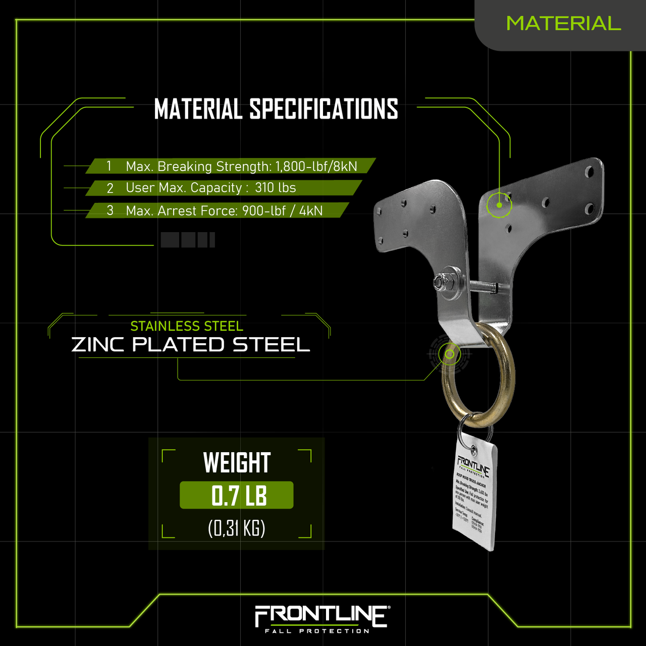 The Frontline Wood Truss Anchor can be installed in a variety of structural wood members at a multitude of angles. This roof anchor can be used in new construction or existing structures. The Wood Truss Anchor can be quickly and easily installed once the proper location that can withstand the required forces is identified. The Wood Truss Anchor is a convenient fall protection anchoring point for roofing residential and commercial applications along structural wooden truss members.