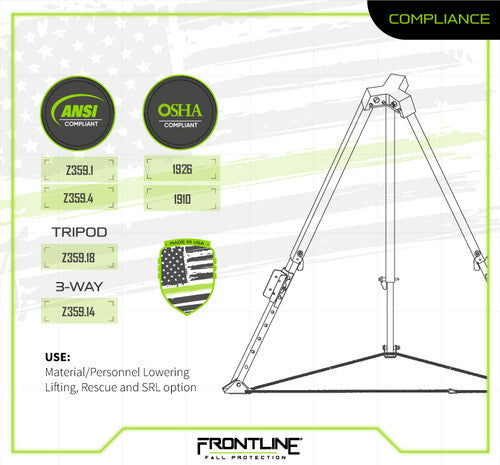 Frontline TAN07RA-US Patriot 7' Confined Space Tripod with 3-Way Retrieval System - Made in USA