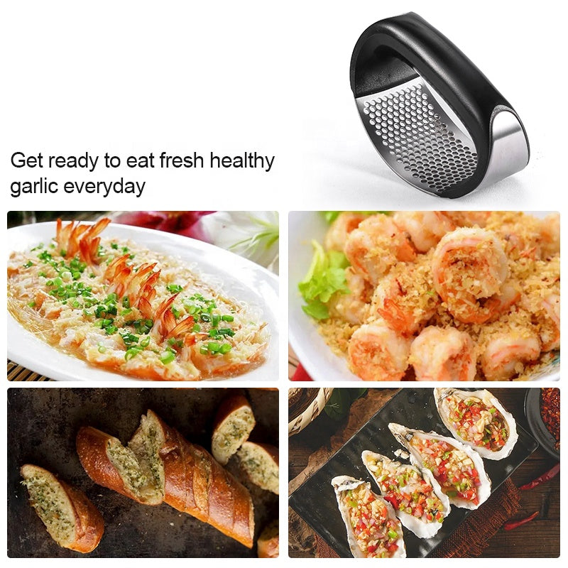 Garlic Press, Stainless Steel, Manual Grinding Curved Ginger Crusher
