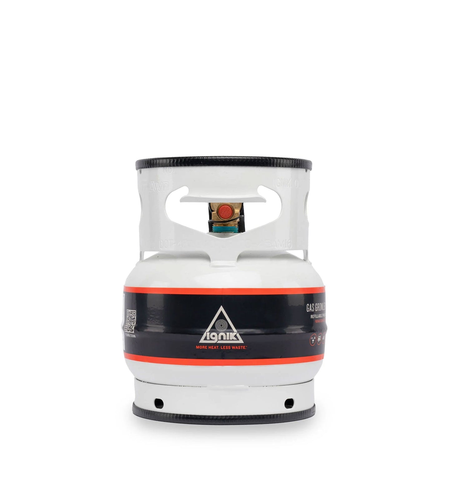 - 3.8-pound (0.9 gallon) refillable propane tank is more economical and less wasteful than single-use, 16-ounce "green" propane bottles and more portable than traditional 20-lb tanks.