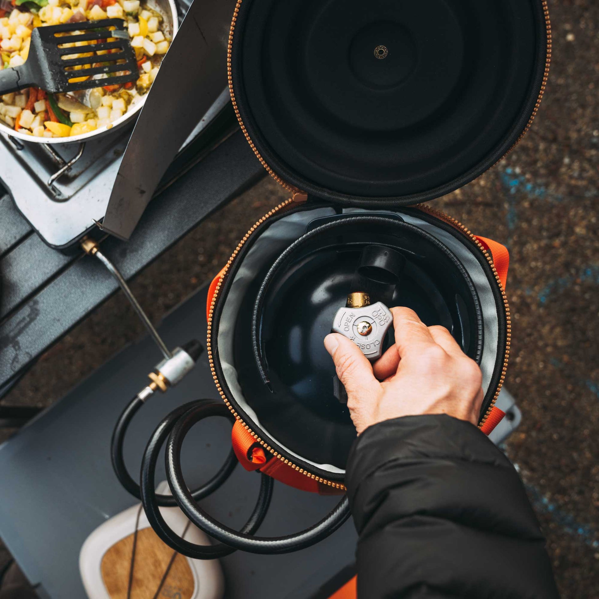 - 4 ft. adapter hose with 1-in 20UNEF connector attaches to popular 2-burner camp stoves, along with 0.5-inch QCC1/OPD devices like home BBQ grills.