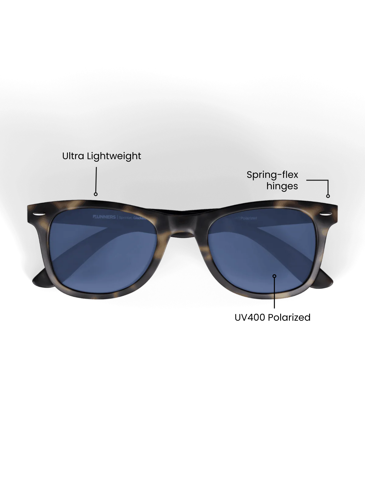 The Sprinters has an iconic classic look and is one of our best-selling styles designed for Runners giving the perfect balance of style and engineering. The anti-fog coating ensures clear vision, while the ultra-lightweight design offers maximum comfort. With spring flex hinges and a no-slip, no-bounce fit, these sunglasses stay securely in place during intense workouts. Embrace the perfect blend of coverage and style, and join the league of dedicated runners who choose Sprinters Sunglasses.