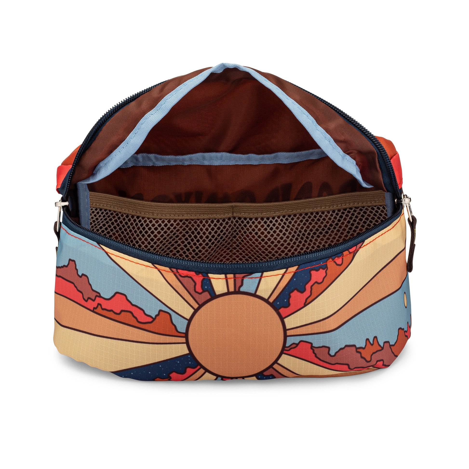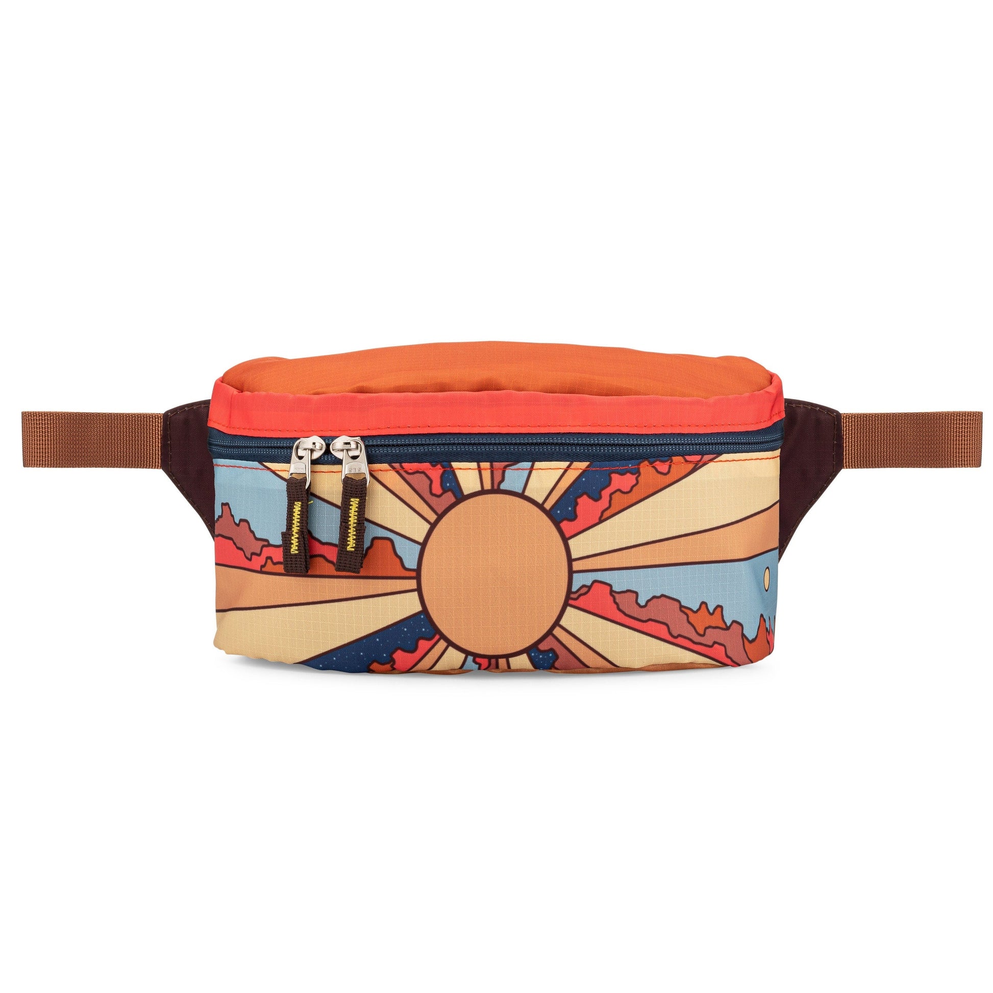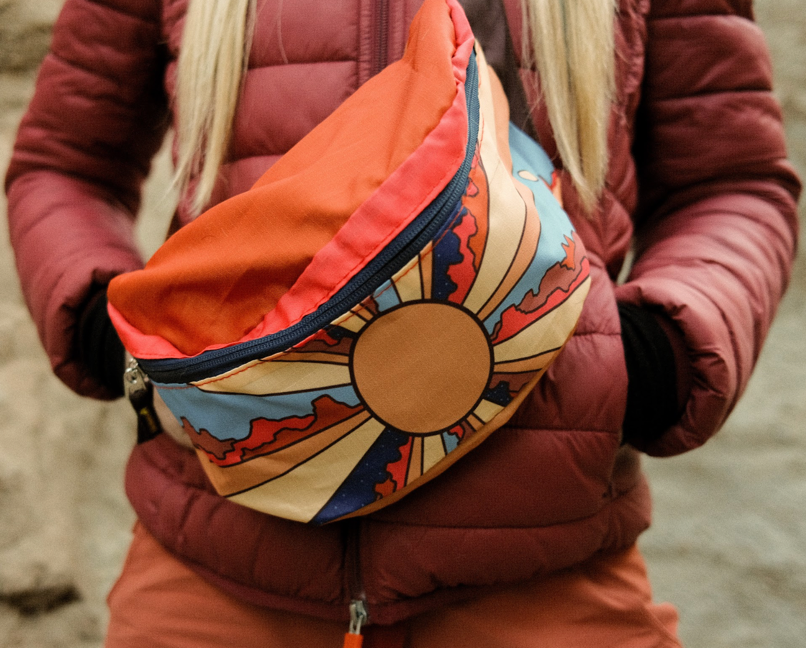 Featuring unique National Parks-inspired designs, our spacious hip pack allows you to travel light without compromising on the essentials. We use durable and water-resistant recycled materials to extend the life of our packs across your favorite hobbies or travel.