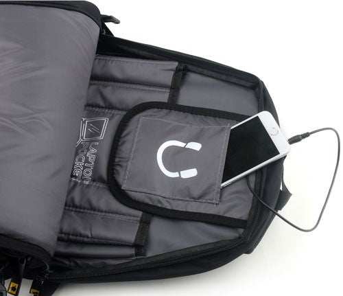 Other Features: Nij iiia certified protection multimedia bulletproof backpck sturdy reinforced handle outer pocket for phones, etc place for water bottle built in auxiliary port built in auxiliary out port from backpack strap 14" x 11" x 20.5"