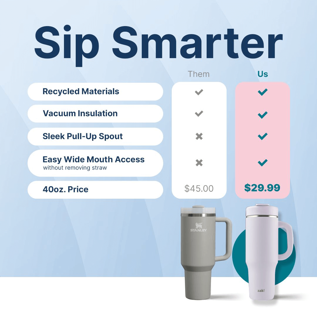 One step doesn’t seem like a big deal. Then again, one snowflake seems inconsequential. Until it creates an avalanche. It’s no secret that none of us will solve the current climate crisis alone. But if each of us can just take one small step after another, we can all make a world of difference for the planet we’re handing over to the next generation. That idea was one of the driving forces behind the design of the Harmony Bottle from zak! All reusable water bottles help break the toxic cycle of single-use plastics, but the Harmony Bottle is made for those of us who want to take environmental responsibility a step further as the Harmony bottle is made with 73% recycled material. But being environmentally responsible doesn’t mean you should have to compromise on quality, functionality, or individuality, and the 40oz Harmony Bottle doesn’t make you sacrifice any of that! The hefty side handle allows you to get a secure handhold and the tapered base makes it simple to slide into most car cup holders to give you access to your favorite beverages on short commutes or long road trips. Best of all, the Harmony 2 in 1 Tumbler from zak! was created with an amazing lid that doesn’t force you to choose between using a straw or sipping from the lid. On one side is a lock-tight lid covering an opening where you can drink hot or cold beverages. On the other side is a pull-up drinking spout for sippin’. It’s amazing how not having to compromise can put a smile on anyone’s face!