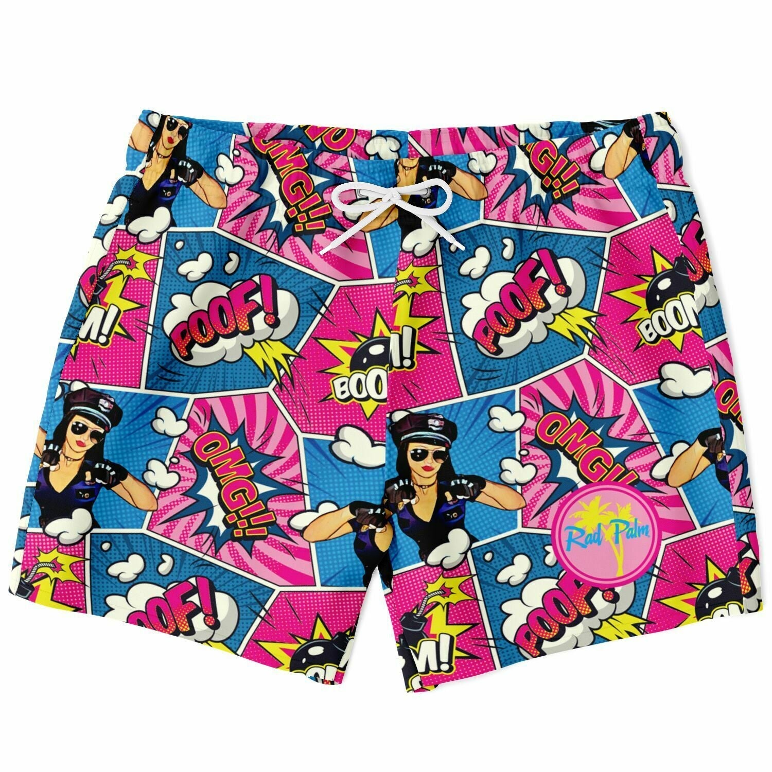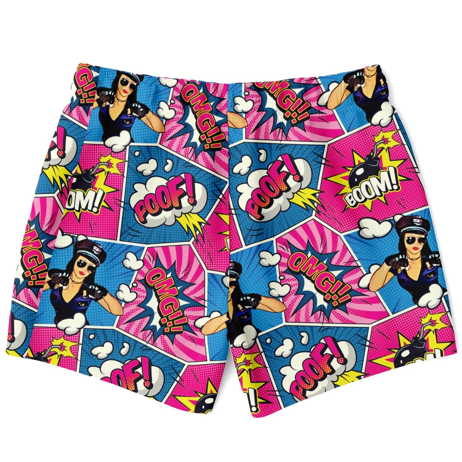 Look and stay cool with these shorter-length swim trunks that hit above the knee. They come in a fast-dry fabric, and feature a drawstring waistband, mesh basket lining and mesh-lined side pockets.