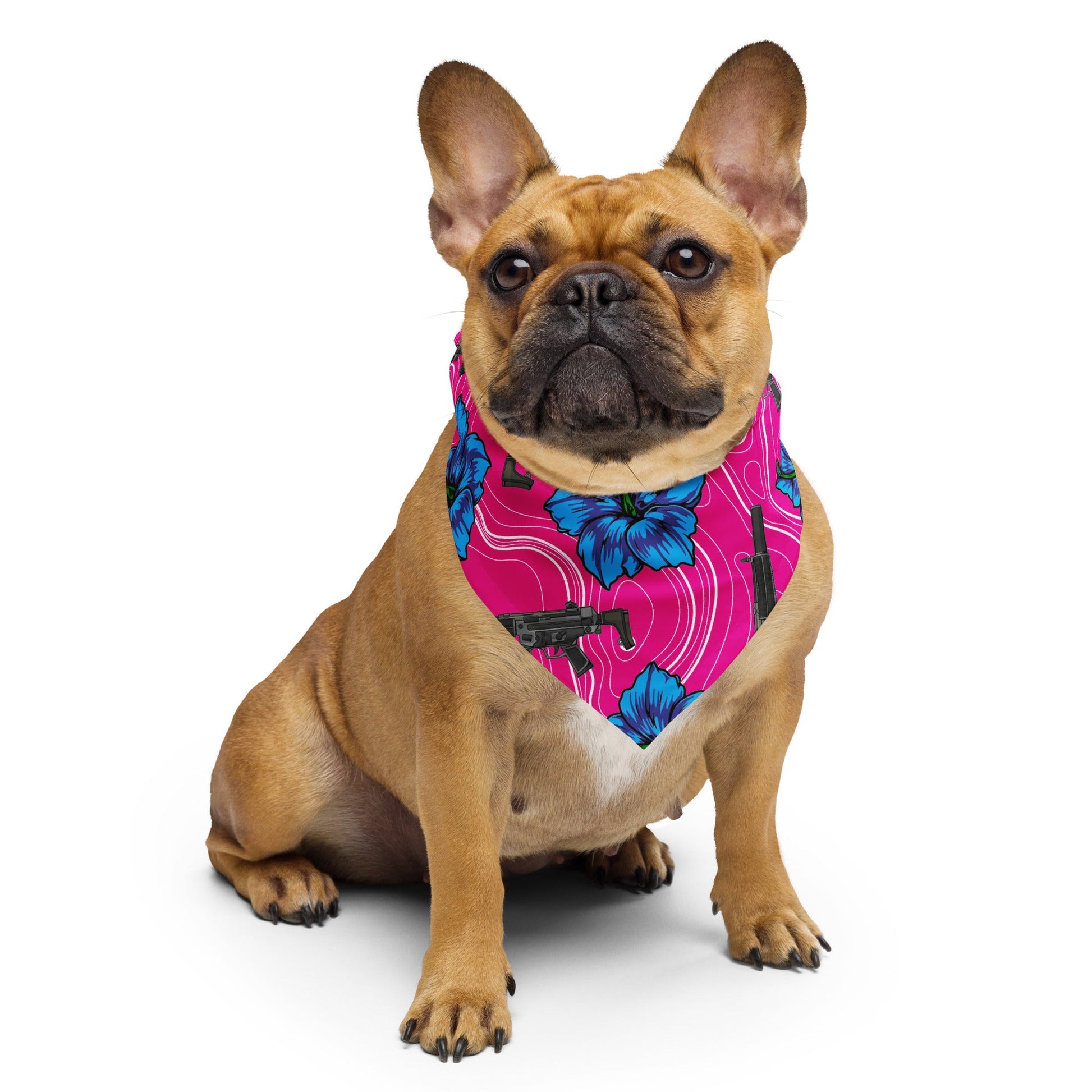 Get ready to make a statement with this all-over print bandana. Mix up your outfits by using this as a headband, necktie, or armband. In fact, why not get a second bandana to match your pet? Grab a few and hit the streets in style!