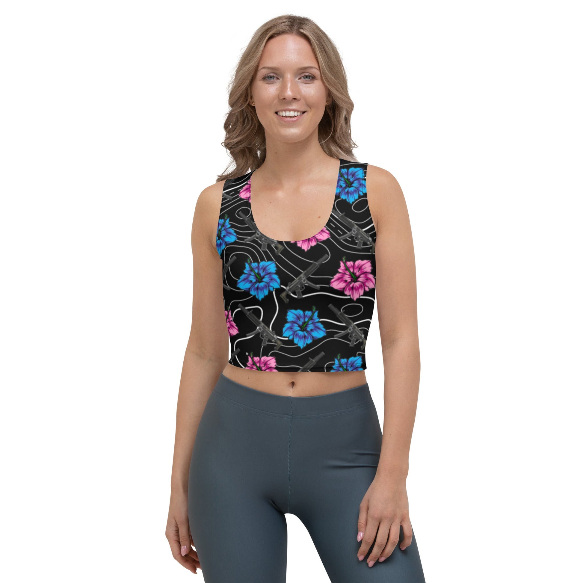 High Capacity Hibiscus Black Crop Top