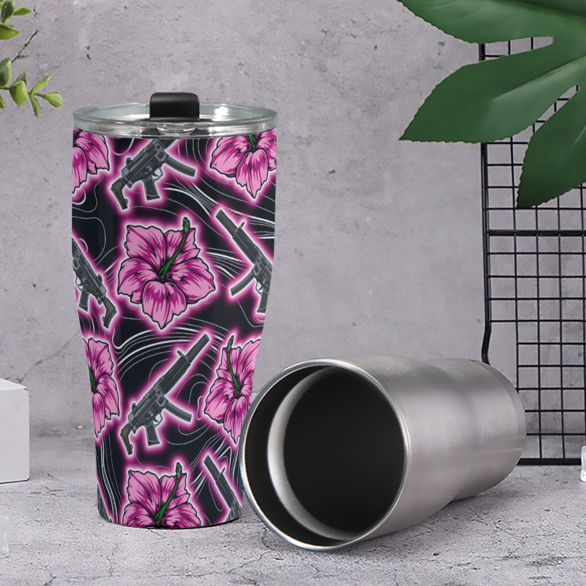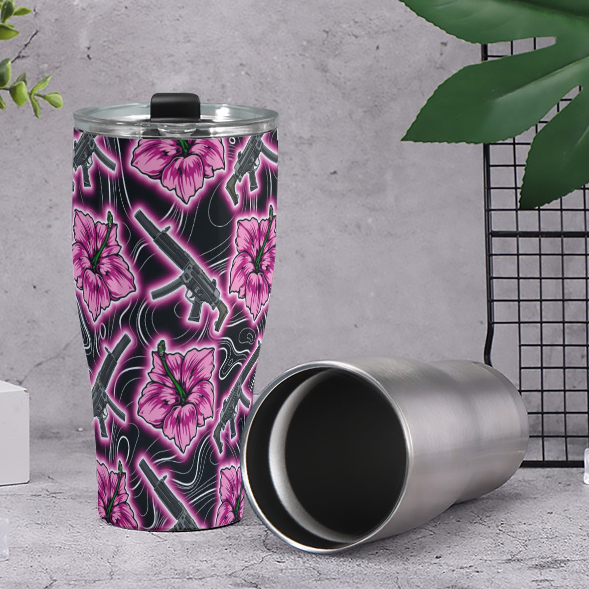 High Capacity Hibiscus Black Neon 30oz Tumbler