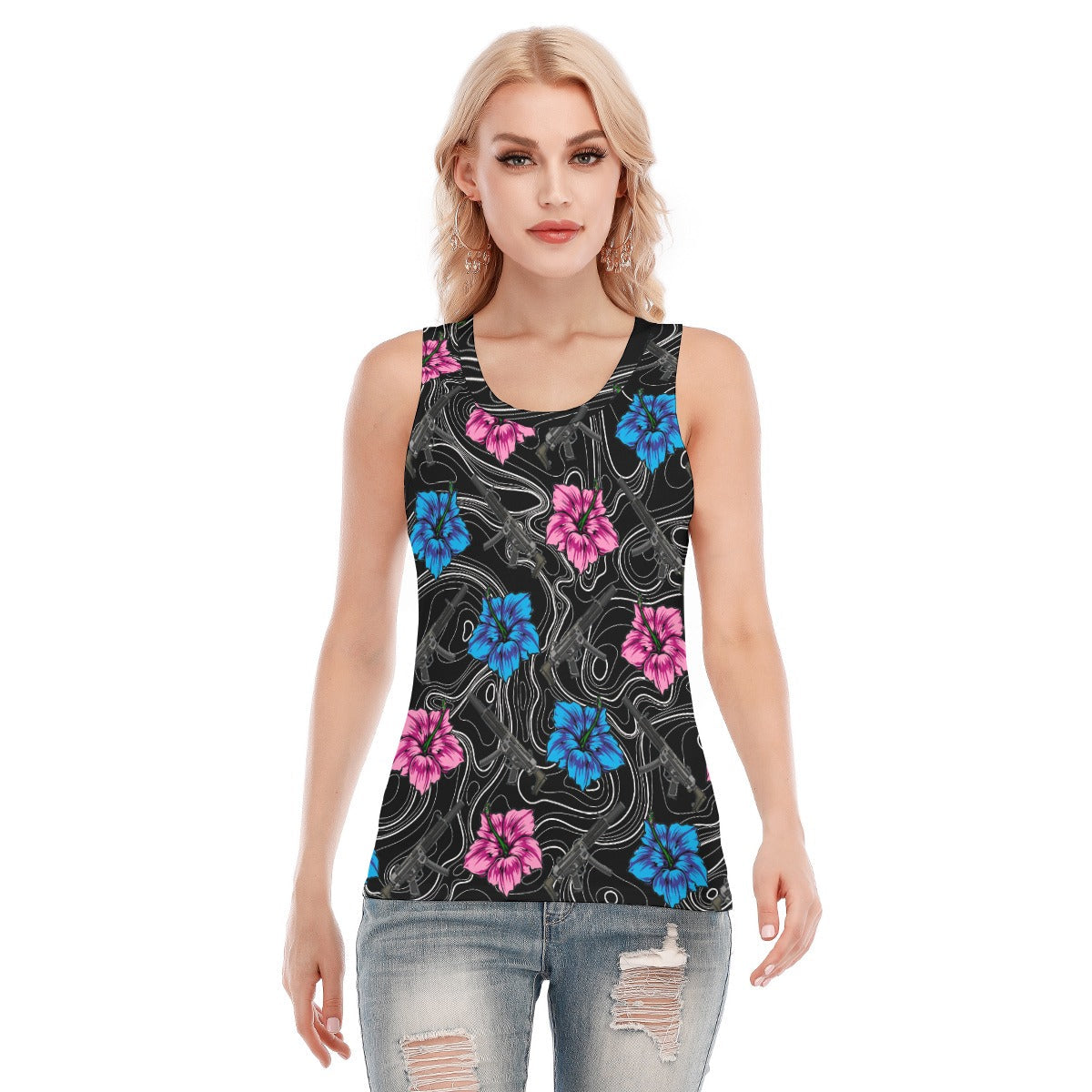 High Capacity Hibiscus Black Women's Skinny Sport Tank Top