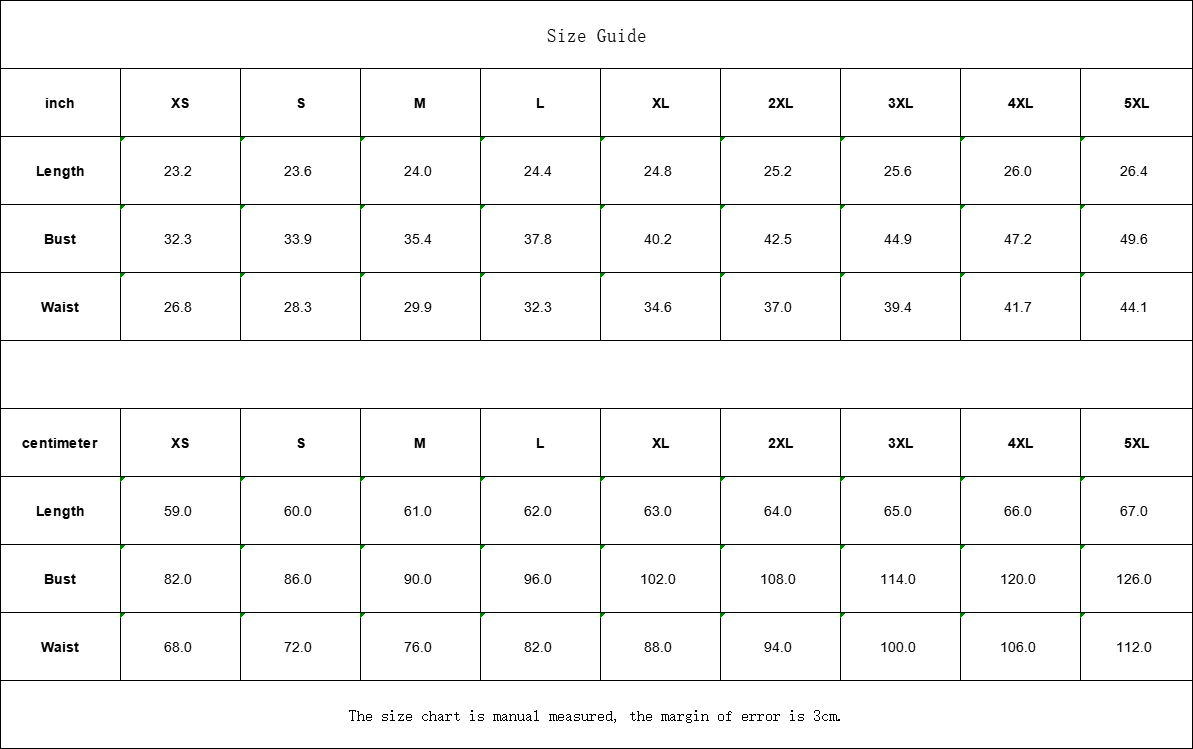 inch | XS | S | M | L | XL | 2XL | 3XL | 4XL | 5XL |