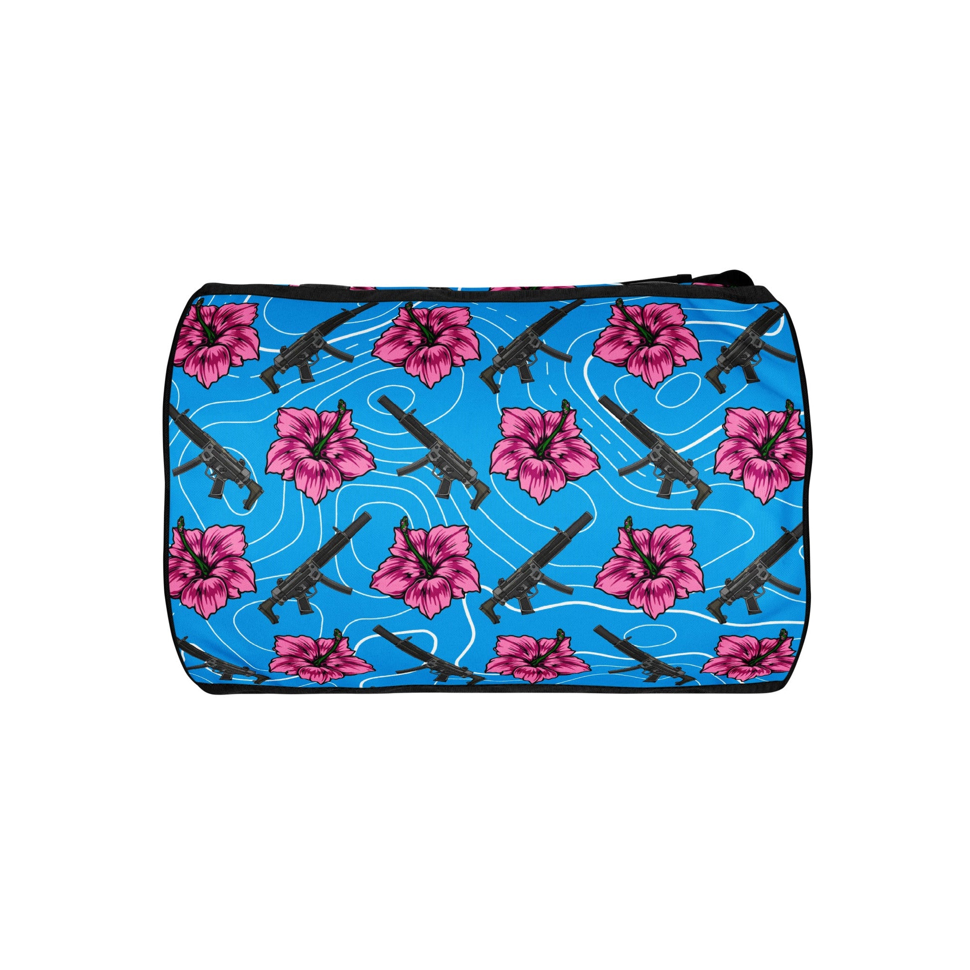 Ready to get your fitness on? Add some punch to pumping iron with this all-over print gym bag. Made from 100% polyester and sturdy, water-resistant fabric, this bag is fun meets function. And it’s got pockets!