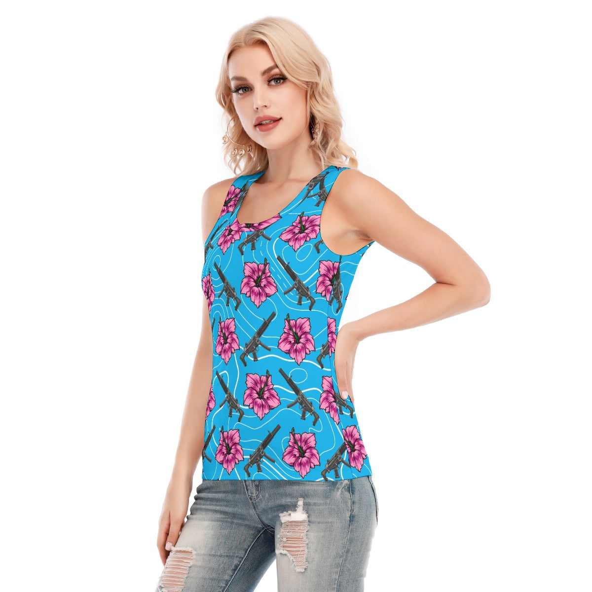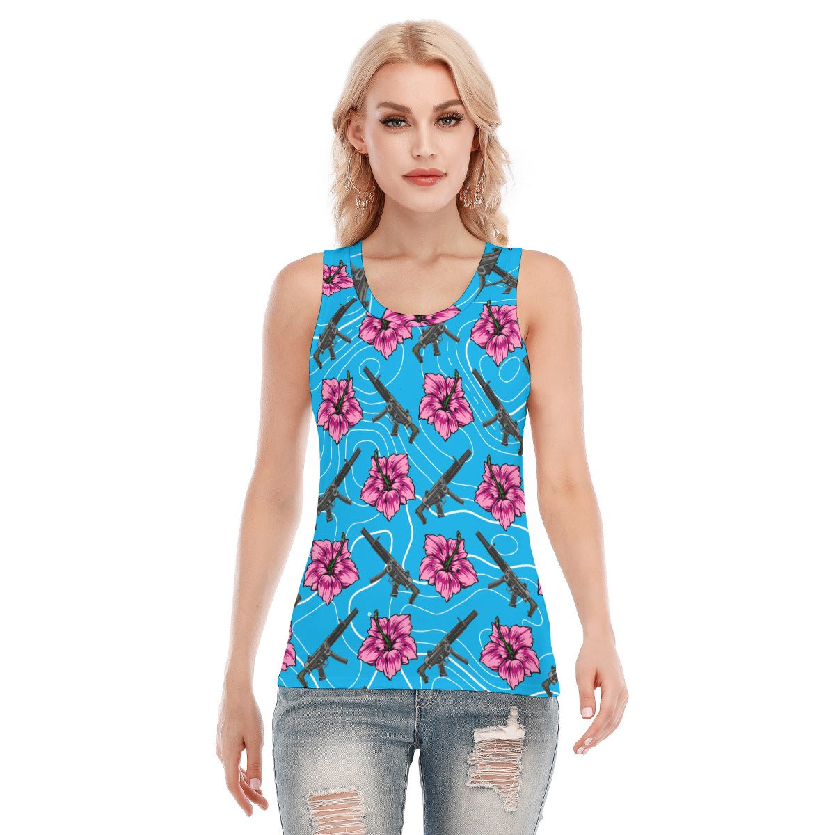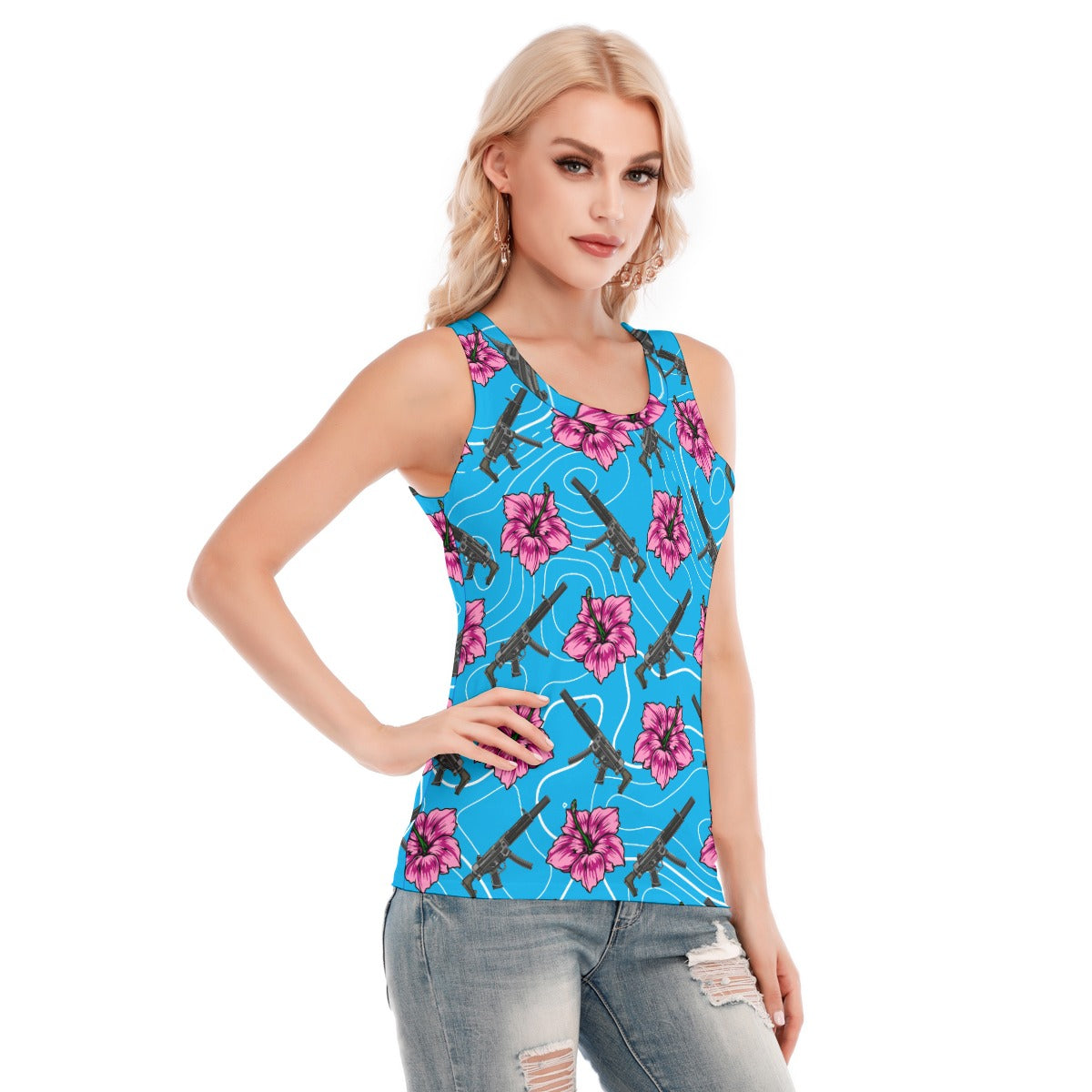 High Capacity Hibiscus Blue Women's Skinny Sport Tank Top