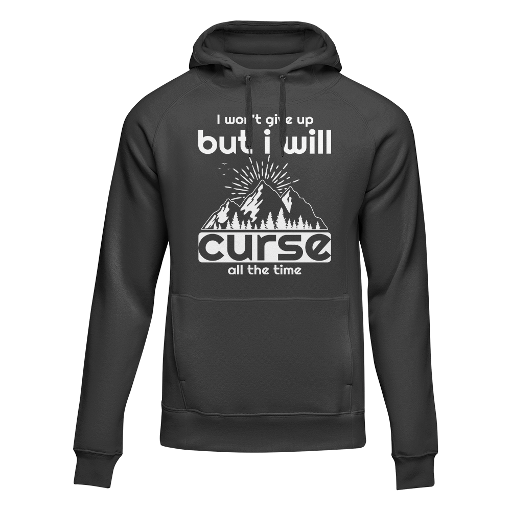 Get chilly on a summer evening fishing by the lake, or simply need something comfy to throw on, this Hiking I Won't Give Up But I Will Curse Unisex Adult Fleece Hooded Sweatshirt with stunning printed designs for Men and Women.