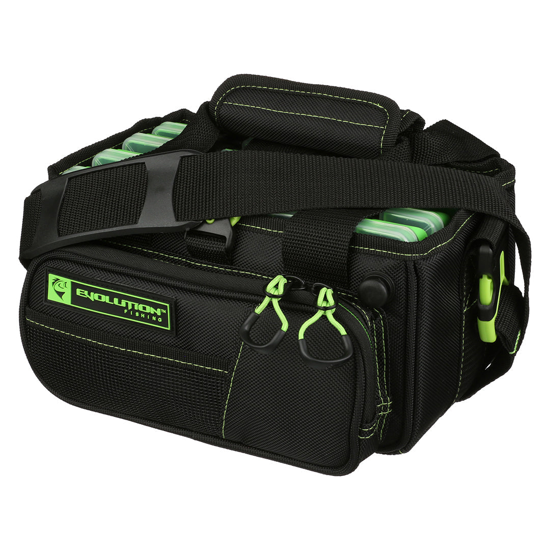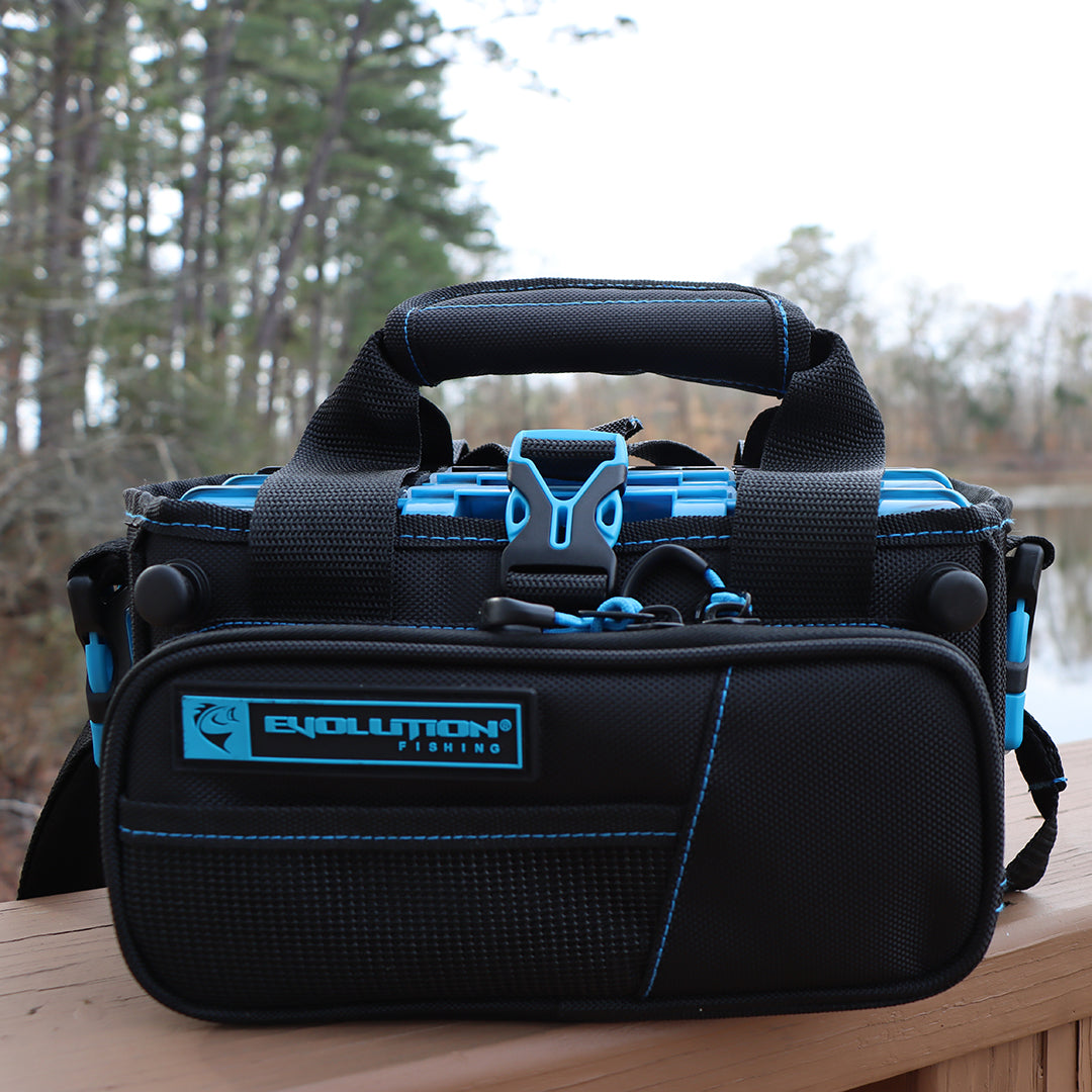 With its open top feature and extremely rugged wear-resistant 1680D construction, the Drift Series Topless Horizontal Tackle Bags deliver the quality and functionality that Evolution Fishing is known for. These Drift Series Tackle Bags have an innovative largemouth, open top feature that provides quick and easy access to all your trays. Slide your trays in horizontally with this version of the tackle bag. The integrated tie down Y-Strap will secure your trays in the bag, and in case of stormy weather, these bags are equipped with an integrated rain fly that you can zip up and store away when not in use. With a large exterior storage pocket and 2 rubber mesh slip pockets, you’ll have ample room to store all your accessories. It’s also equipped with a non-slip, waterproof bottom with integrated drainage grommets. Transporting these tackle bags will be a breeze with the adjustable, removable shoulder strap and the padded top carry handle. With the capacity to hold up to 4 tackle trays, it’s more than capable of holding all your fishing essentials. Each tackle bag will include 4 matching color Drift Series Tackle Trays.