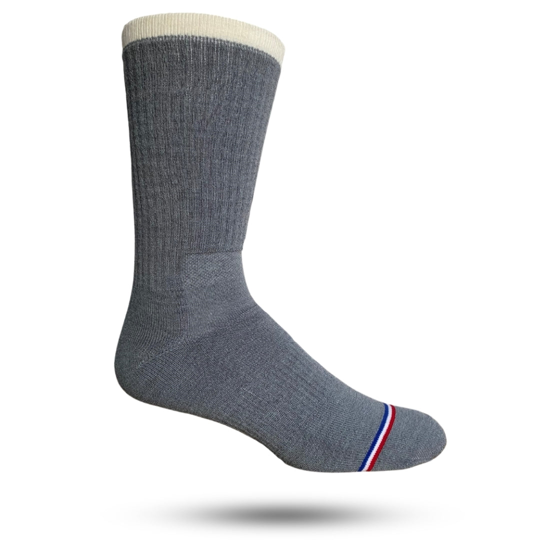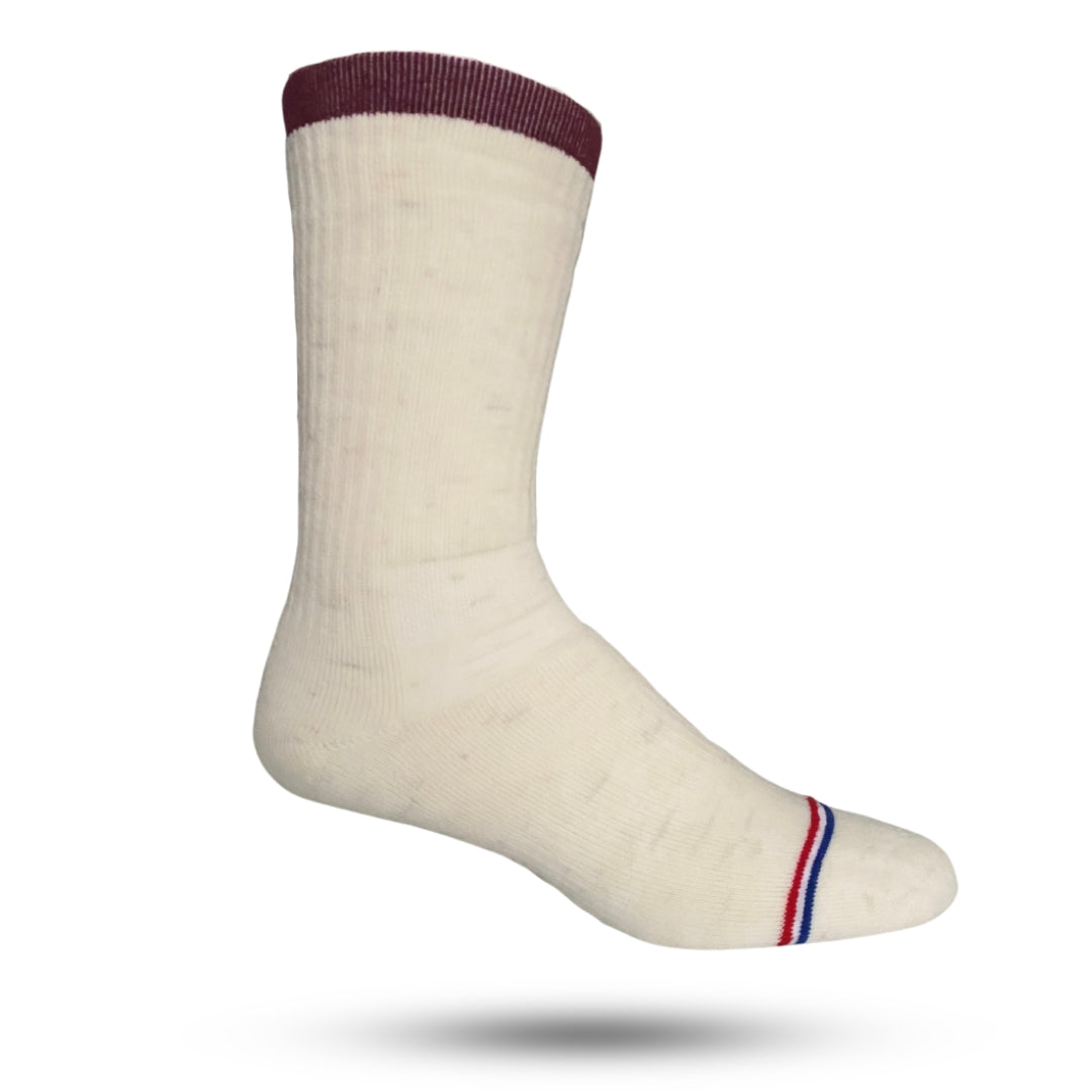 We used the "Wild Bill" core and let the natural fibers show. Look close at the flecks of different colors from the sheep's wool making these socks rich! Our merino wool is still the strongest and softest on the market! Our Adventure socks wick moisture away from your feet to keep you comfortable no matter how many miles you put on them! A reinforced smooth toe seam helps make your descent from the mountains even more enjoyable. “Karyssa” is rounded off with arch compression and a mesh panel for the perfect temperature and fit.