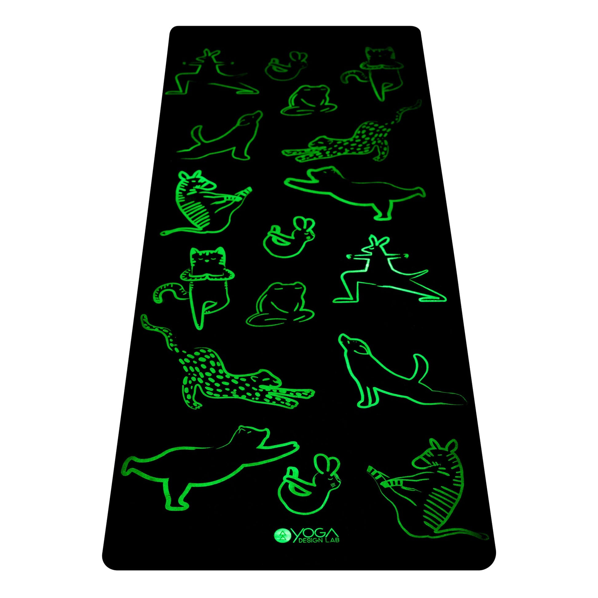 Let your little adventurer explore the wild with the Kids Combo Yoga Mat - Glow-in-the-Dark Jungle. Featuring adorable animals like playful zebras, meditating frogs, and cheerful leopards, this vibrant mat glows in the dark to add an extra layer of fun and wonder.