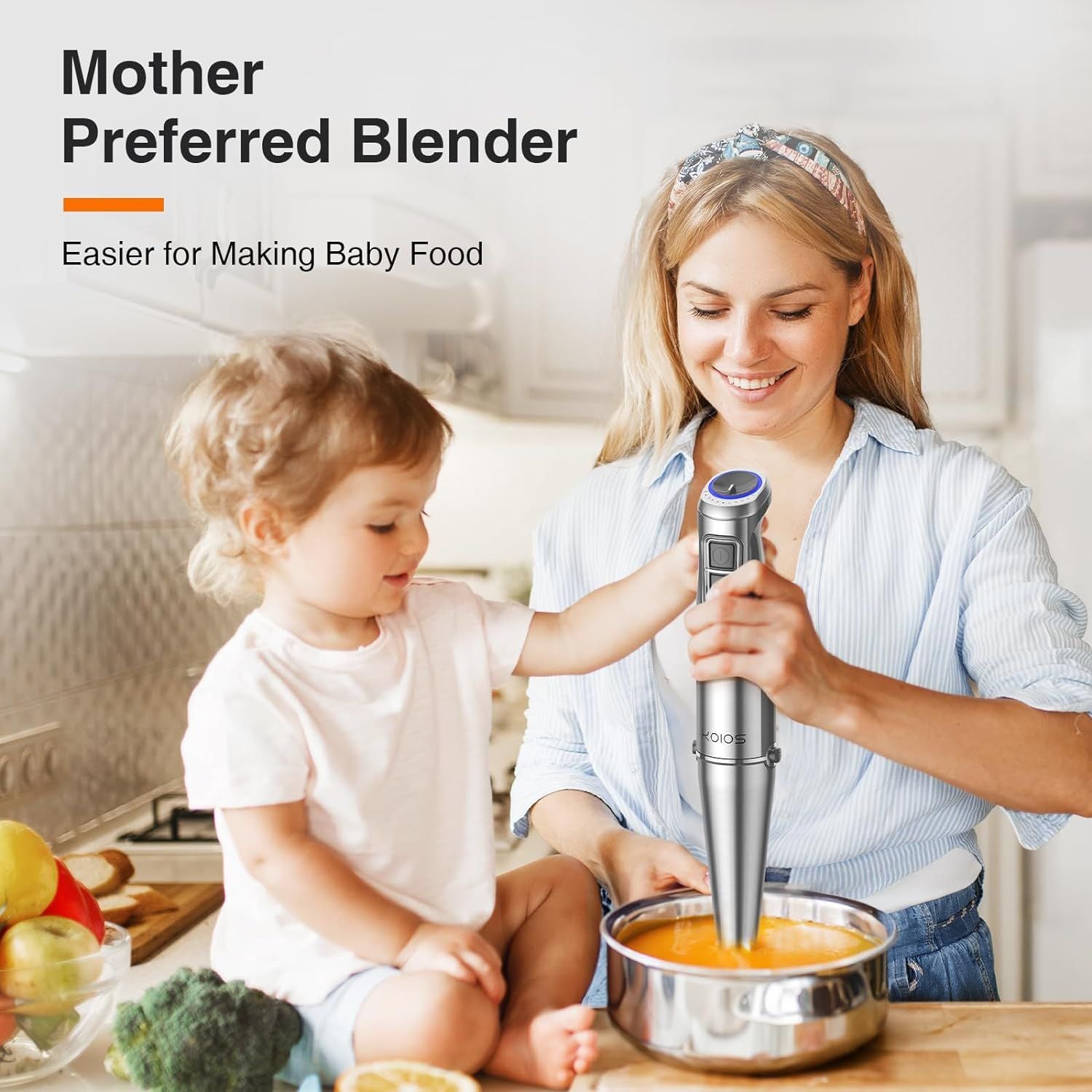 KOIOS 1100W Immersion Hand Blender, Stainless Steel Stick Blender with 12-Speed & Turbo Mode, 5-in-1 Handheld Blender with 600ml Mixing Beaker with Lid, 500ml Chopper, Whisk, Milk Frother, BPA-Free