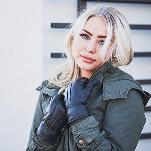 Ladies Warm Winter Dress And Work Gloves, Thermal Lining, Genuine Black Leather