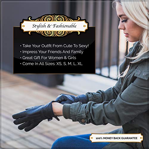 - {100% GENUINE LEATHER}: Our gorgeous riding gloves are made from real, premium leather. These sleek, attractive gloves will add a classy touch to your style. Impress your friends and family with these fashionable, all-leather gloves. These beautiful gloves are fitted, making your hands look delicate and slim. They’re the perfect handwear!