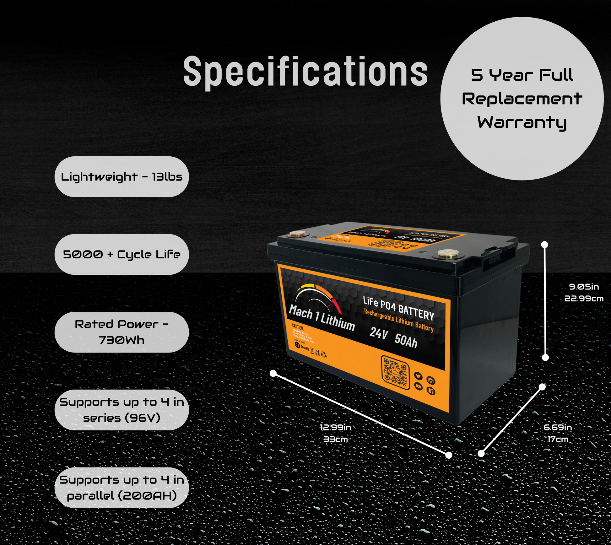MACH 1 LITHIUM 24V 50AH DEEP CYCLE LIFEPO4 Battery