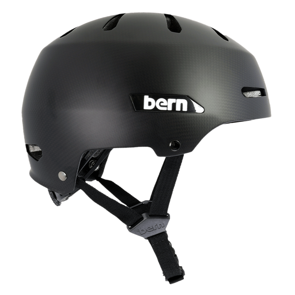 The Carbon Macon 2.0 is an evolution of BERN's old-school skate-inspired Macon helmet. This full Carbon Fiber design features ultralight RibTech EPS construction & DVRT protection padding. Extreme durability in a low profile, comfortable, ultra lightweight package.
