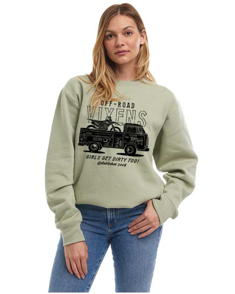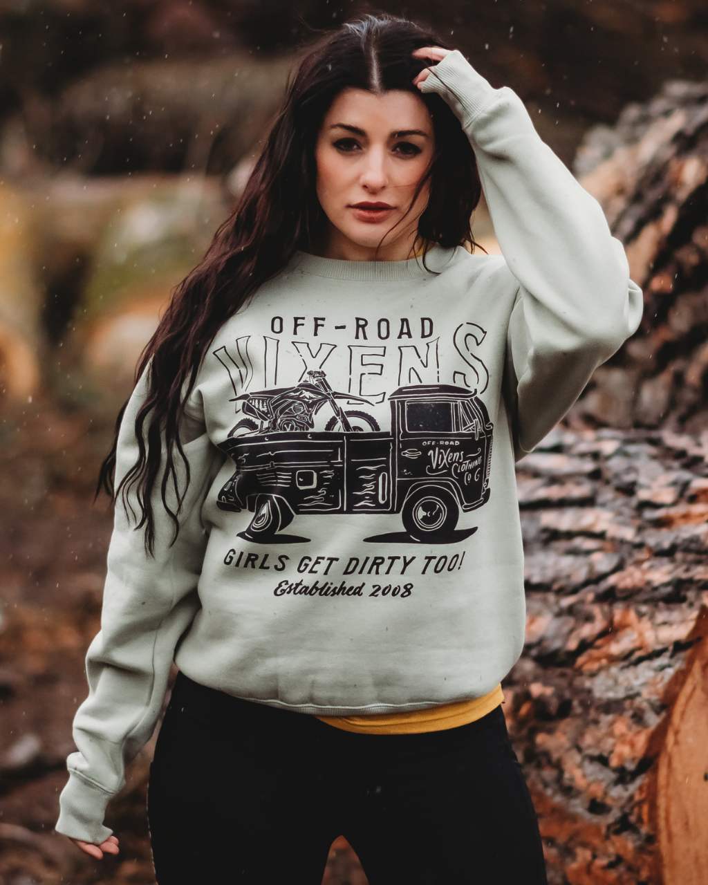We're kickin' it old school with this one! This frosty green unisex crew neck with retro black print will take you back in time. Wear it at the track, riding, hiking, or just hanging out. Wherever you wear it, you're bound to turn heads.
