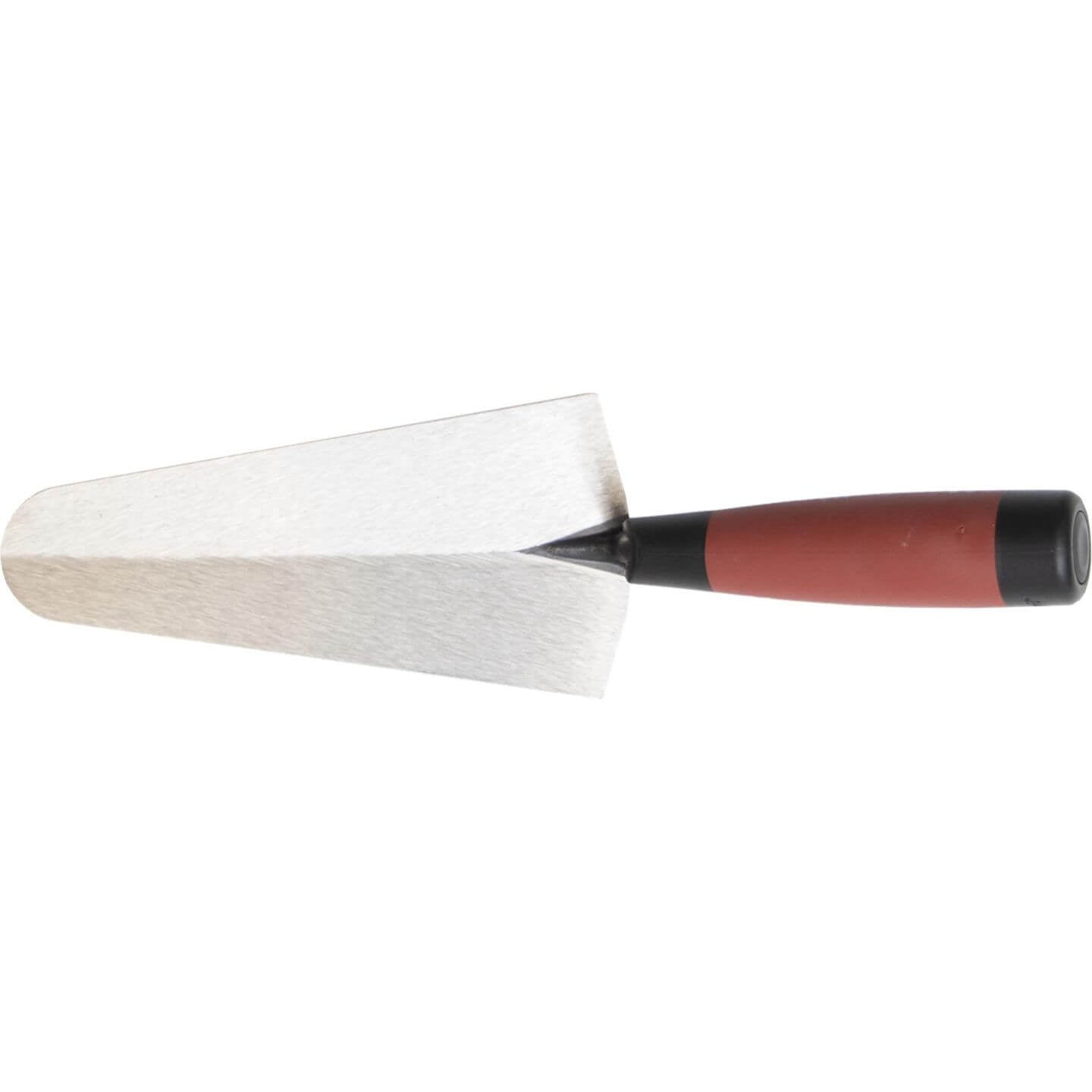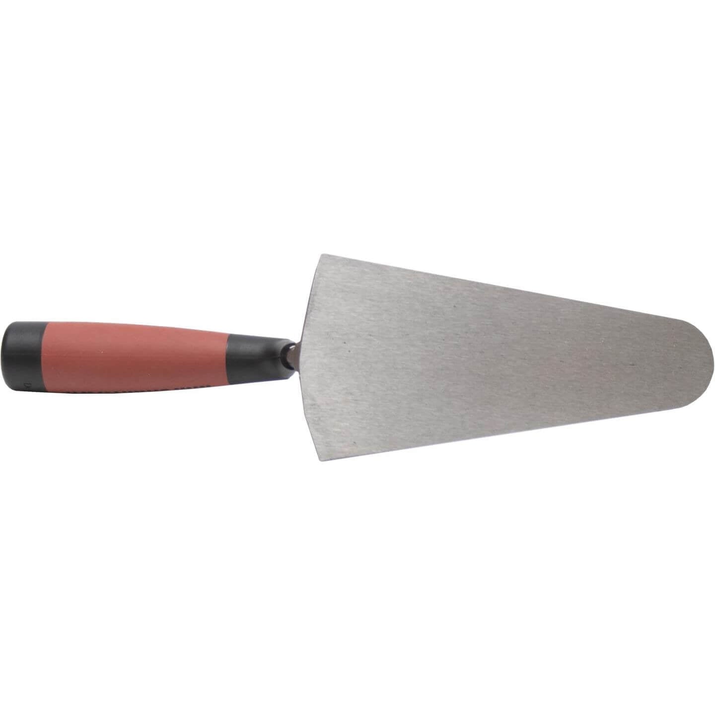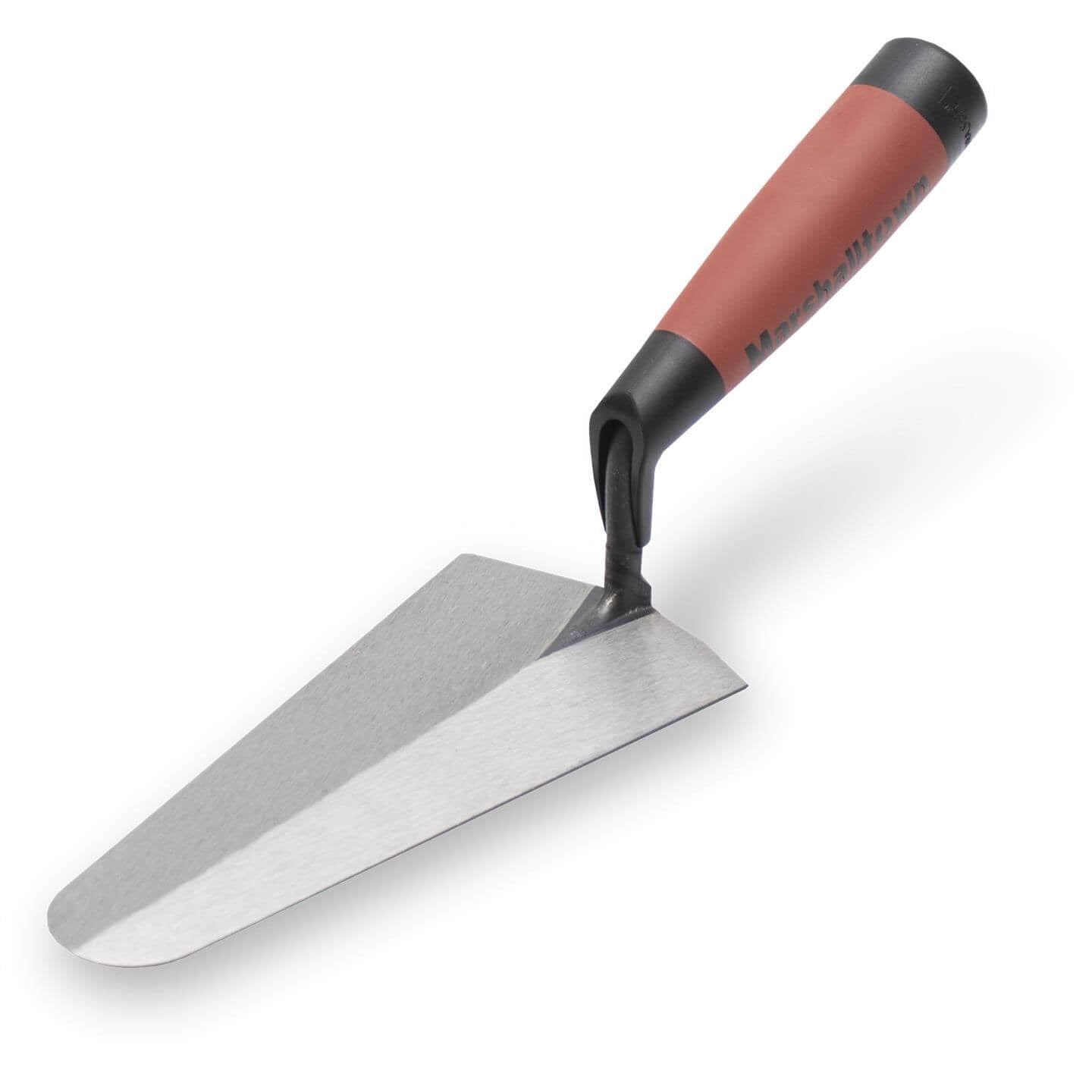 The MARSHALLTOWN Gauging Trowels are versatile masonry tools built to help you gauge, mix, and apply specific quantities of quick-setting mortar or plaster to any wall or surface. Its distinct V-shaped back and broad rounded tip are forged from a single piece of high carbon steel for enhanced durability and performance. We offer two handle styles to suit your preference. Choose between our soft grip DuraSoft® handle with an integral finger guard or the traditional hardwood handle strengthened with a metal ferrule. This product is Made in the USA with Global Materials.