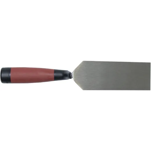 The MARSHALLTOWN Margin Trowel’s slim flat-nosed design helps you easily level and spread mortar or tile adhesive into tight places where larger trowels won’t fit. The 5”, 6”, or 8” blade and tang are forged from a single piece of durable high carbon steel that is then tempered, ground, and polished for maximum balance and flexibility. Choose between our resilient DuraSoft® with an integral finger guard, grippy DuraCork®, or classic hardwood handle with metal ferrule. This product is Made in the USA with Global Materials.