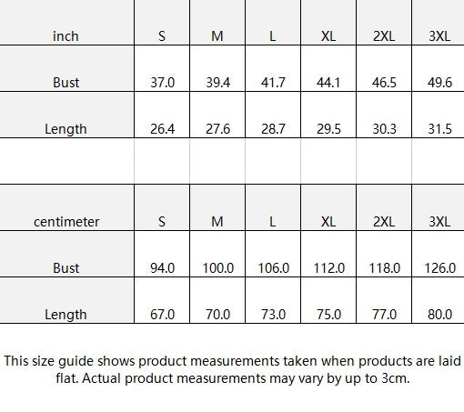 This size guide shows product measurements taken when products are laid flat. Actual product measurements may vary by up to 1".