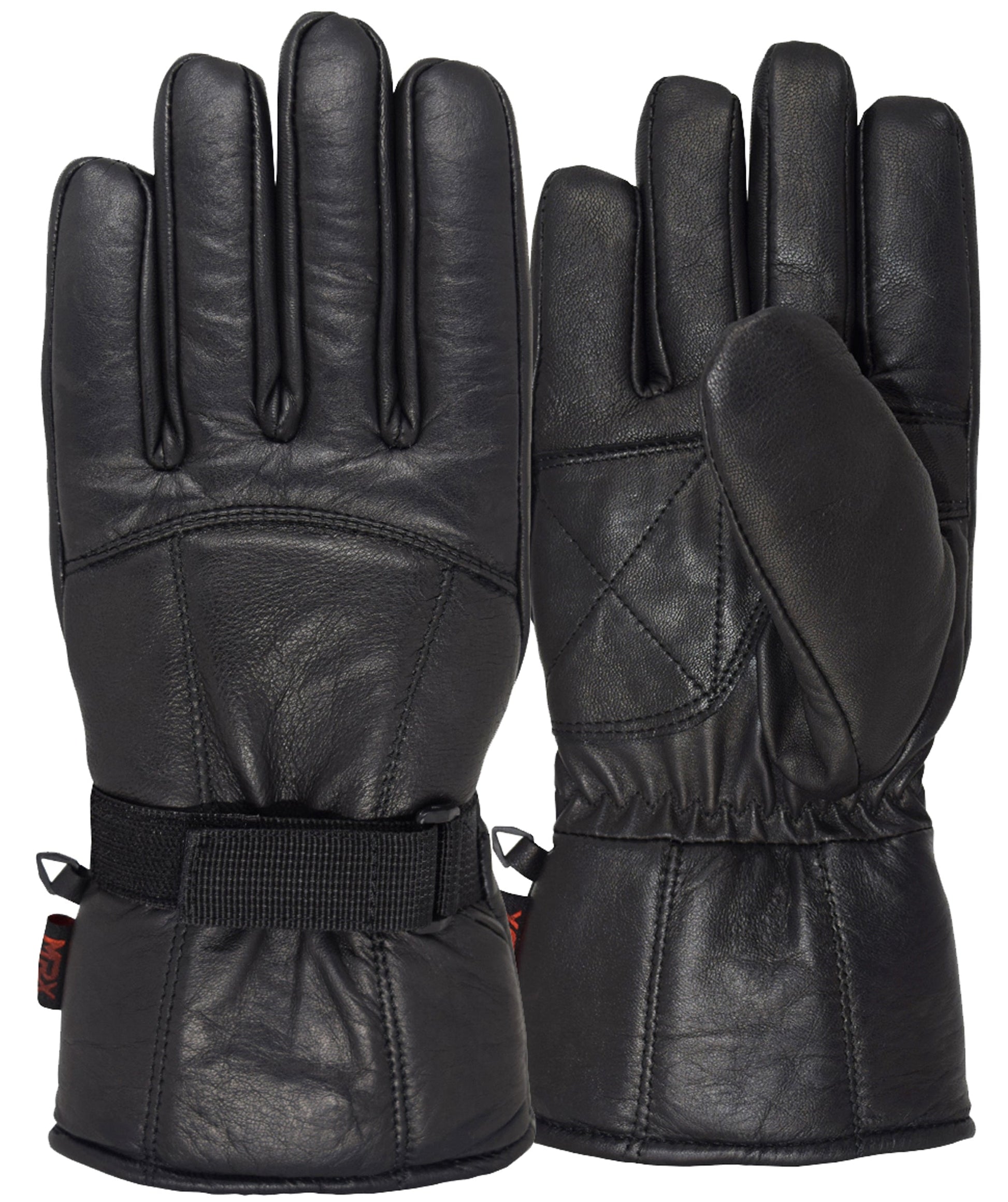 Mens Warm Winter Cold Weather Glove Leather Motorcycle Gloves Thermal Linning
