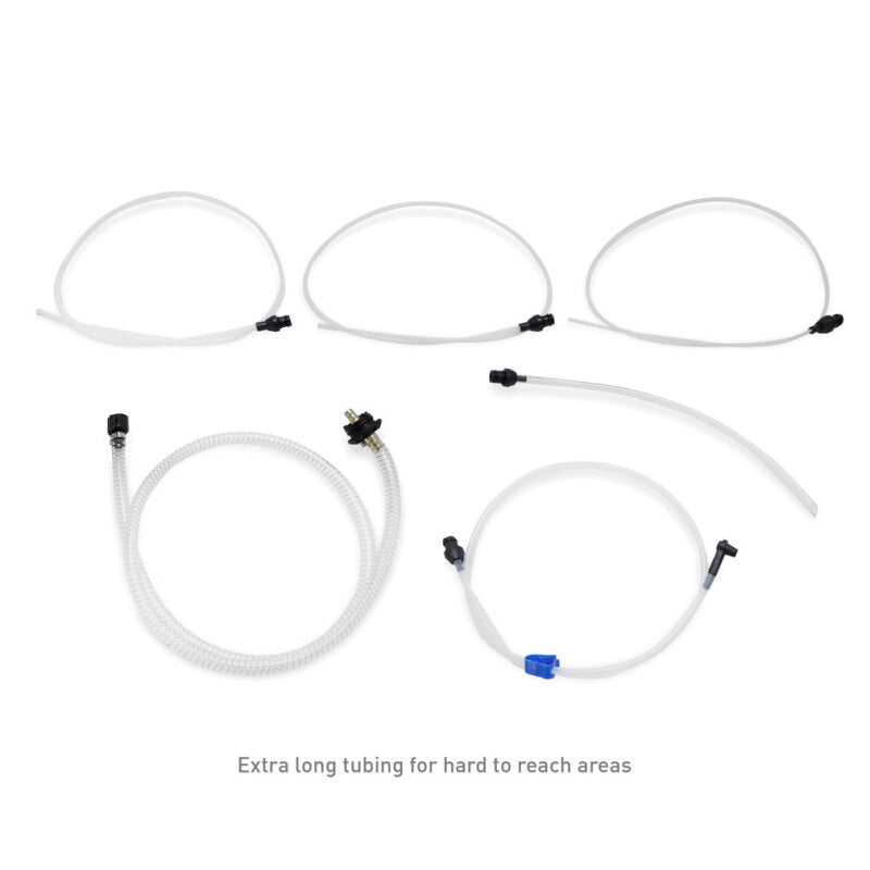 The Mishimoto line of fluid extractors saves you time and money on your vehicle’s maintenance. Fluid extractors are the mess and hassle-free way of changing common automotive fluids. You no longer have to lie on the ground or in your driveway, spilling dirty oil over yourself and your floor, contorting into awkward positions to reach that pesky drain plug. The Mishimoto fluid extractors offer two modes of operation: a pneumatic function that draws fluid into the unit by way of shop air and a manual mode for use when shop air is not accessible or convenient. Ranging in capacity from 5.6 to 9.5 liters, we offer a size for any job you have. Each kit comes with four draw straws ranging from 2 to 7mm in diameter and four feet long, enabling you to fit most dipstick tubes and small orifices. Additionally, an adapter for bleeder screws makes brake and clutch fluid services a breeze. Low-viscosity fluids such as engine oil, ATF, coolant, power steering, and brake fluid are easily managed with the extractor. When the job is done, the lid unscrews, making recycling your fluid seamless. All this, backed by our Mishimoto Lifetime Warranty, means years of trouble and spill-free service