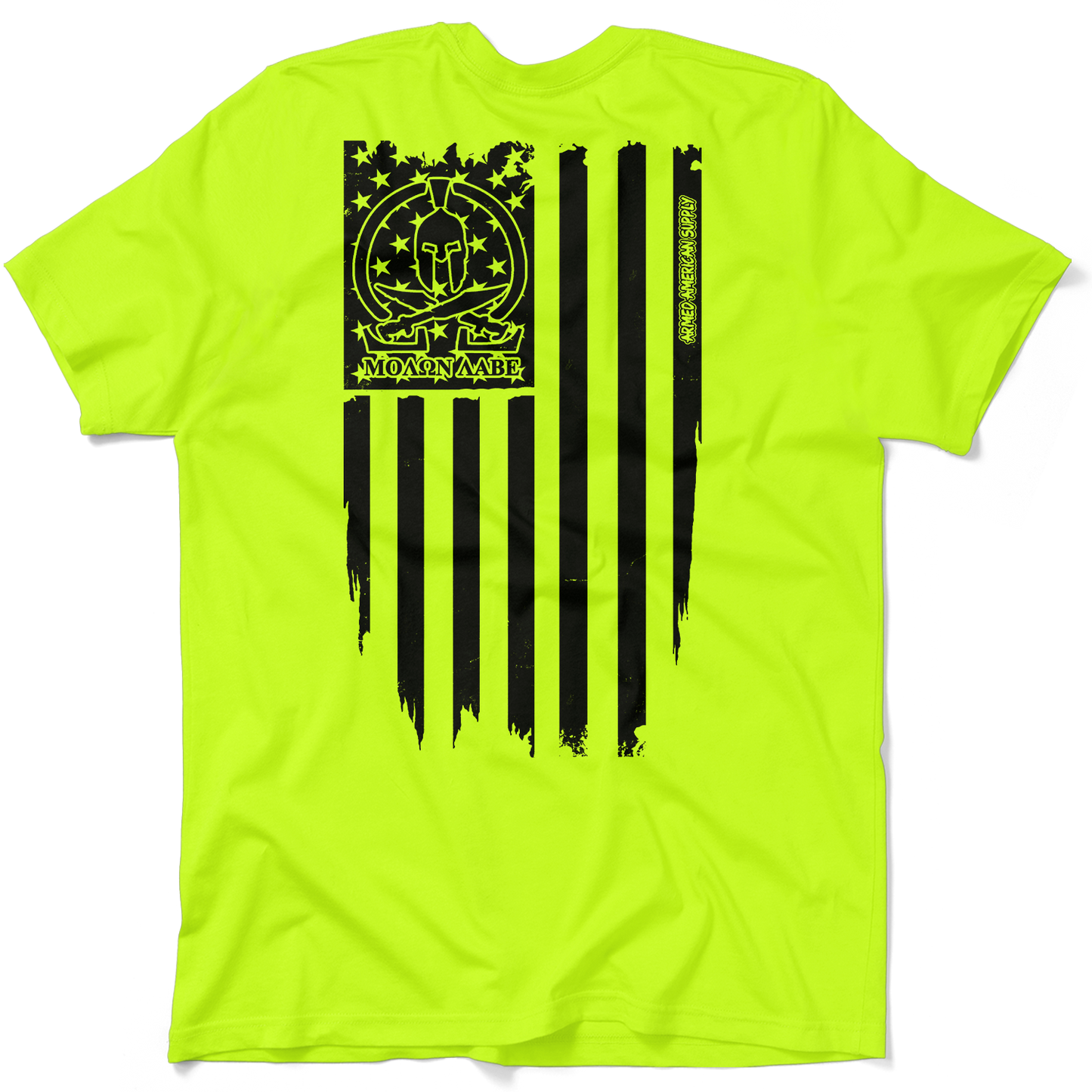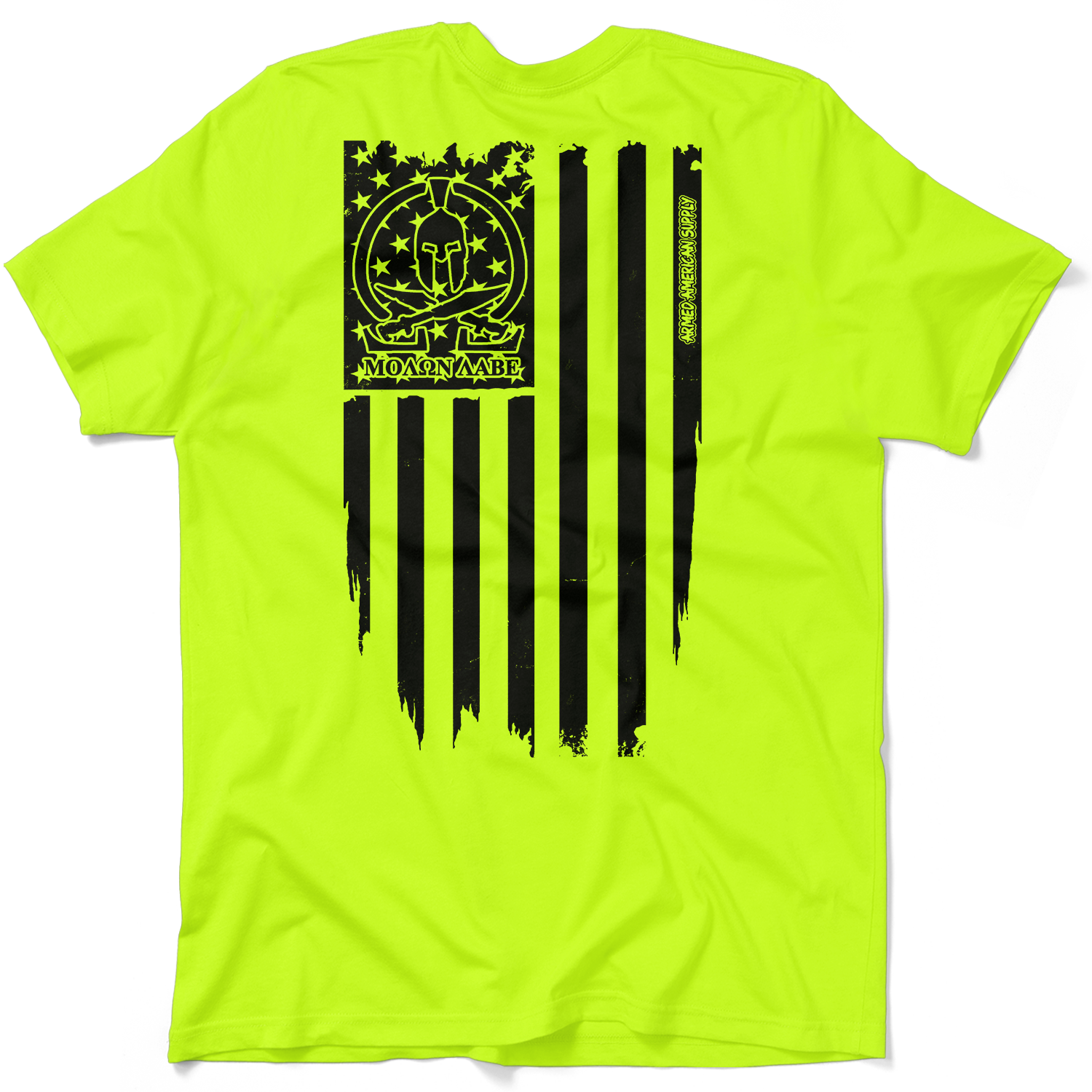 Molon Labe Ghost Flag - Safety Yellow Pocket T-Shirt