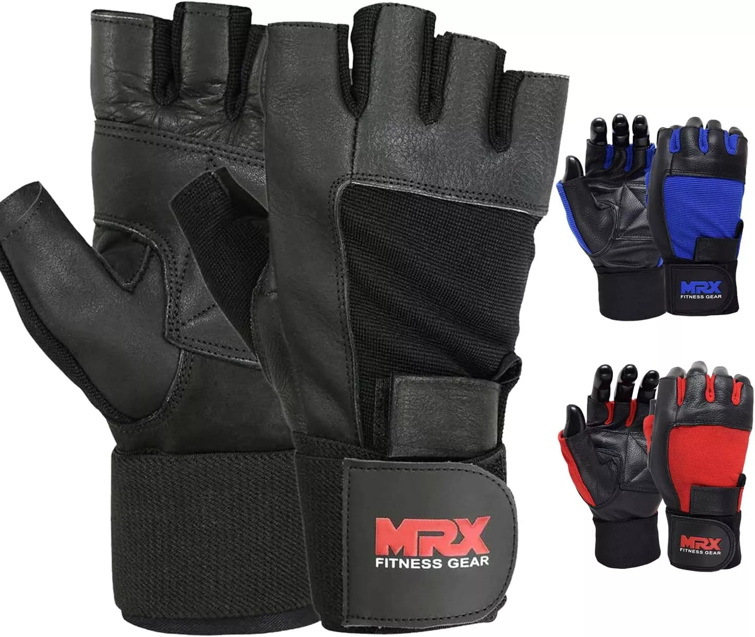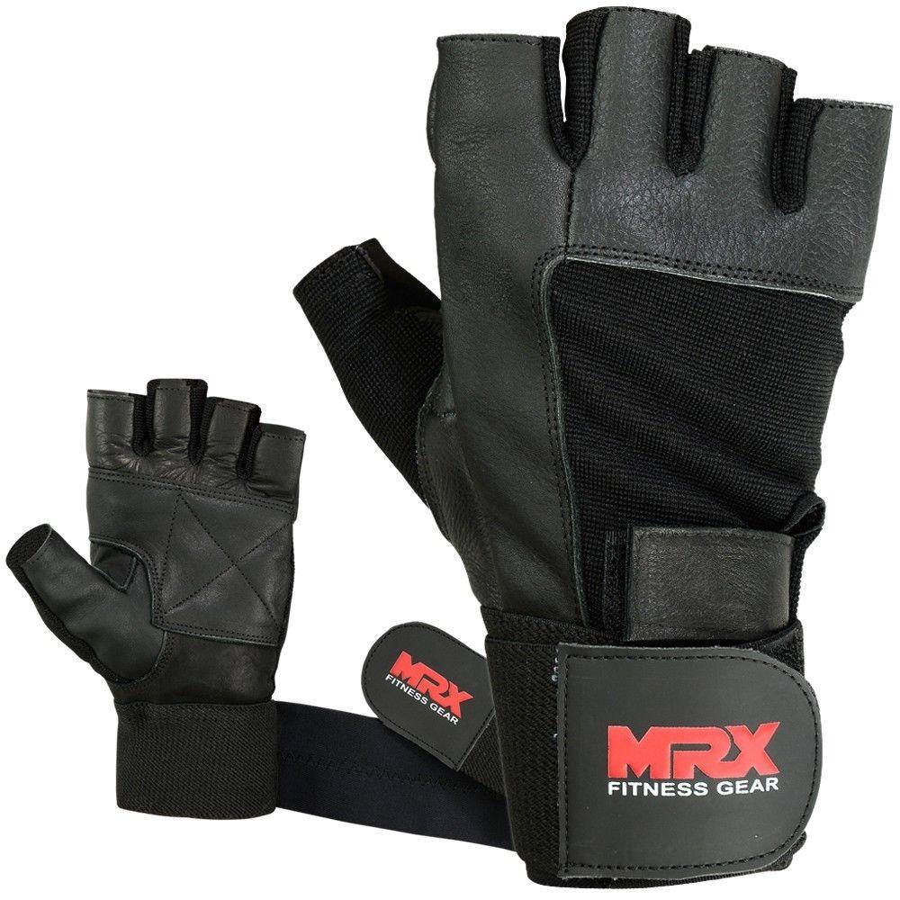 MRX Weight Lifting Gloves Leather Workout Glove With Long Wrist Strap