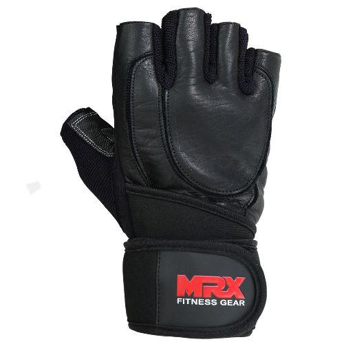 MRX Weight Lifting Leather Gloves With Long Wrist Strap for Better Wrist Support in Leather Black