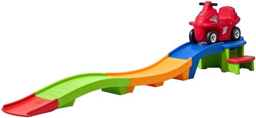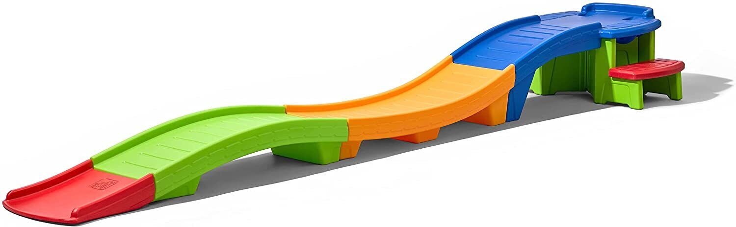 This colorful roller coaster toy is not only fun, but also educational. It's an ideal addition to an outdoor play space, where little ones can practice balance, hand-eye coordination, and sharing. The set also includes 2 sets of non-slip steps, allowing your child to climb up to the platform from either side and access the coaster car.