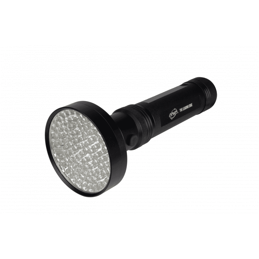 The biggest, brightest, and best UV Flashlight from MVP is here — We have a re-stock of the MVP Extra Large 100 LED UV Flashlight which is the ideal tool for charging Eclipse 2.0 plastic! This extra large flashlight charges UV reactive materials in record time, leaving you with more time to focus on playing and less time worrying about charging your discs. Powered by 6 AA batteries (included) and featuring sturdy metal casing, the 100 LED UV Flashlight quickly and efficiently charges Eclipse Glow plastic when applied directly to the glow surface. Pick up an Extra Large 100 LED UV Flashlight today and Glow The Sport!