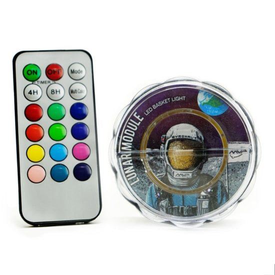 A technological advancement in basket lighting has led us to the Lunar Module LED basket light. This light is fully remote controllable, offering many different color lighting options at the push of a button. Multiple timer options available for 4 or 8 hour modes, so you can set it and forget it. The Lunar Module LED light is powered by 3 AAA batteries that are easy to replace keeping this light going all glow season long! Elevate your Glow rounds with these premium basket lights.
