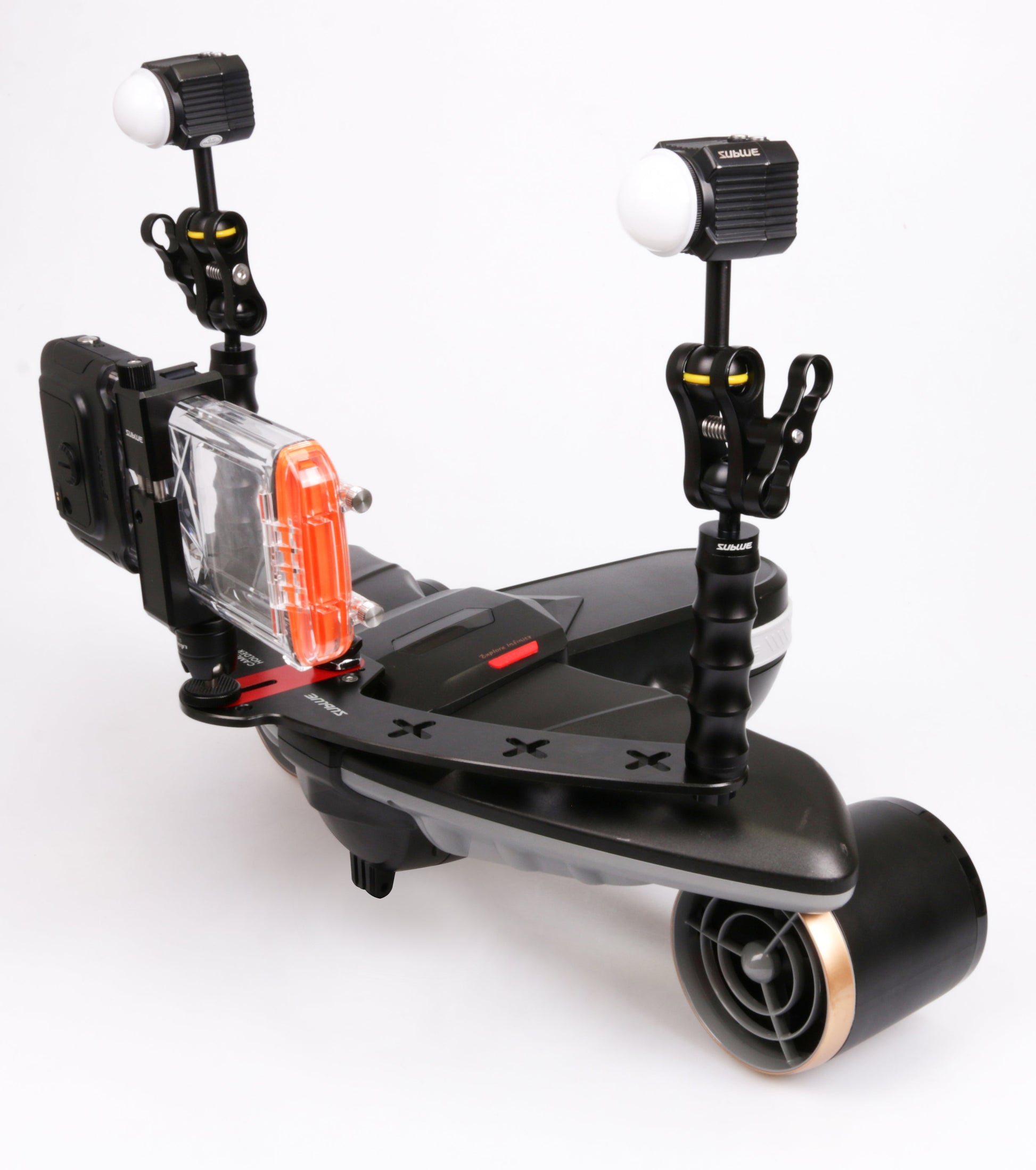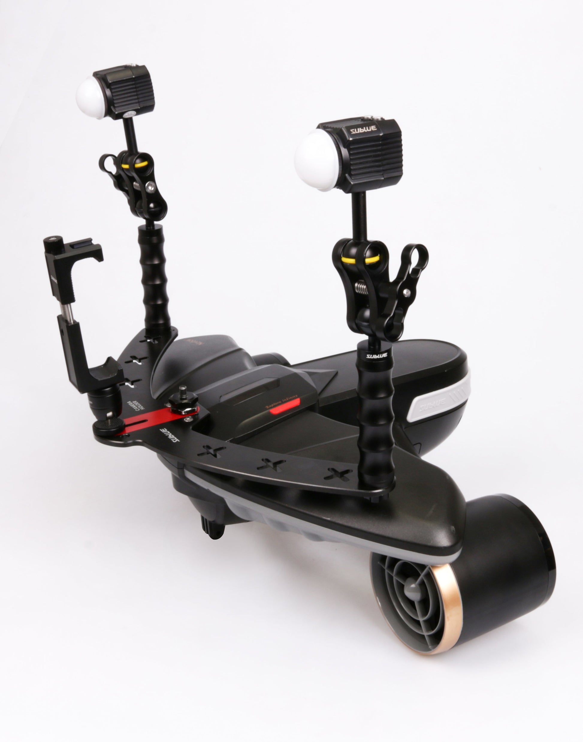 Capture breathtaking underwater scenes with this modular mount for your Navbow or Navbow+. Securely attach an action camera, DSLR, waterproof LEDs, float arms, and more—so you never miss a marine-life moment. The plate’s flexible layout lets you customize your setup for any dive.